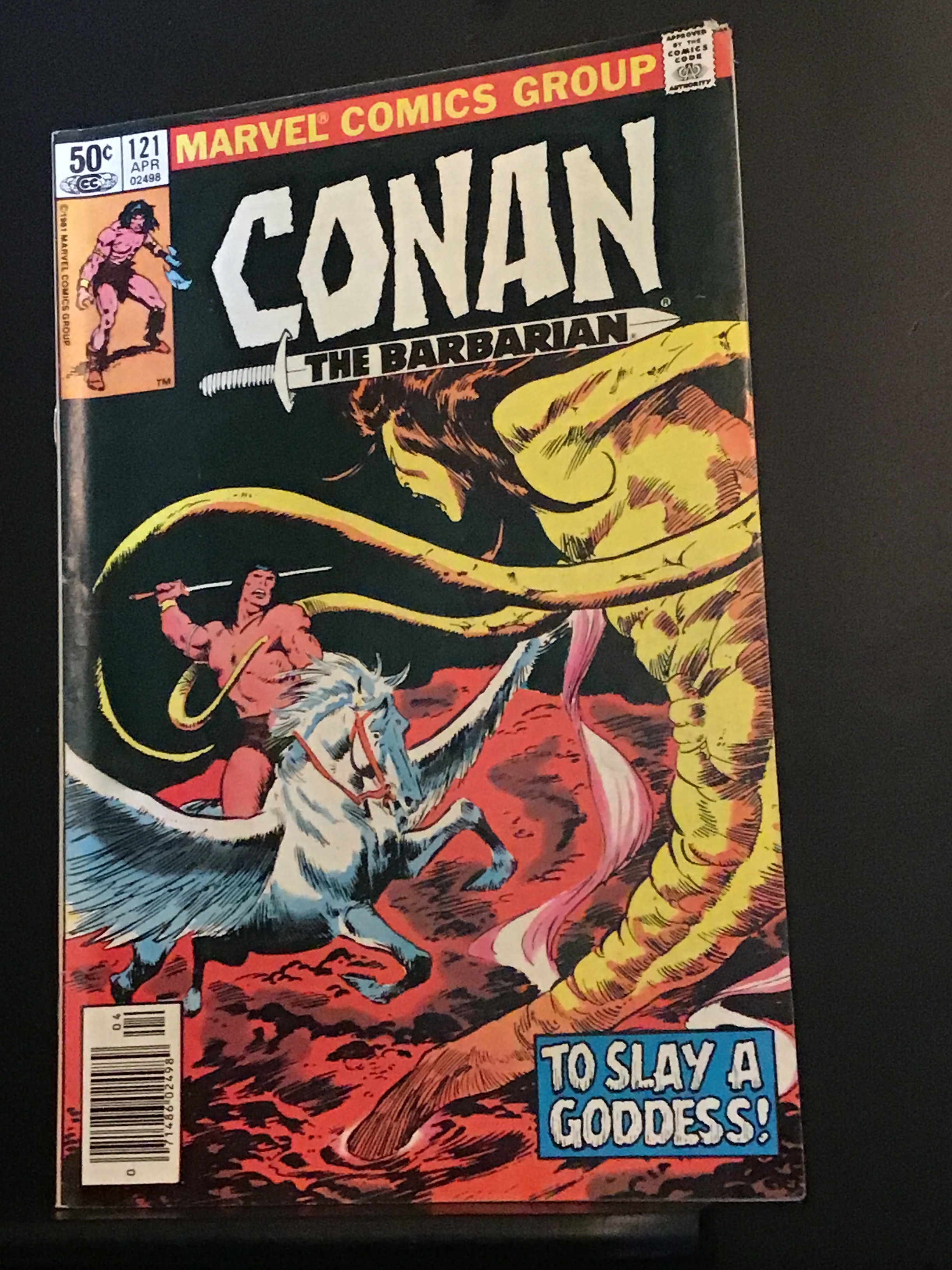 Conan the Barbarian #121 (1981) High-grade beauty! With very faint where appropriate to grade. Cream pages/white inside covers. There is a Cheney tip at the upper round the end of the book.
