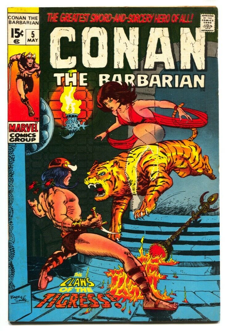 CONAN THE BARBARIAN #5 1971-TIGER COVER comic book fn