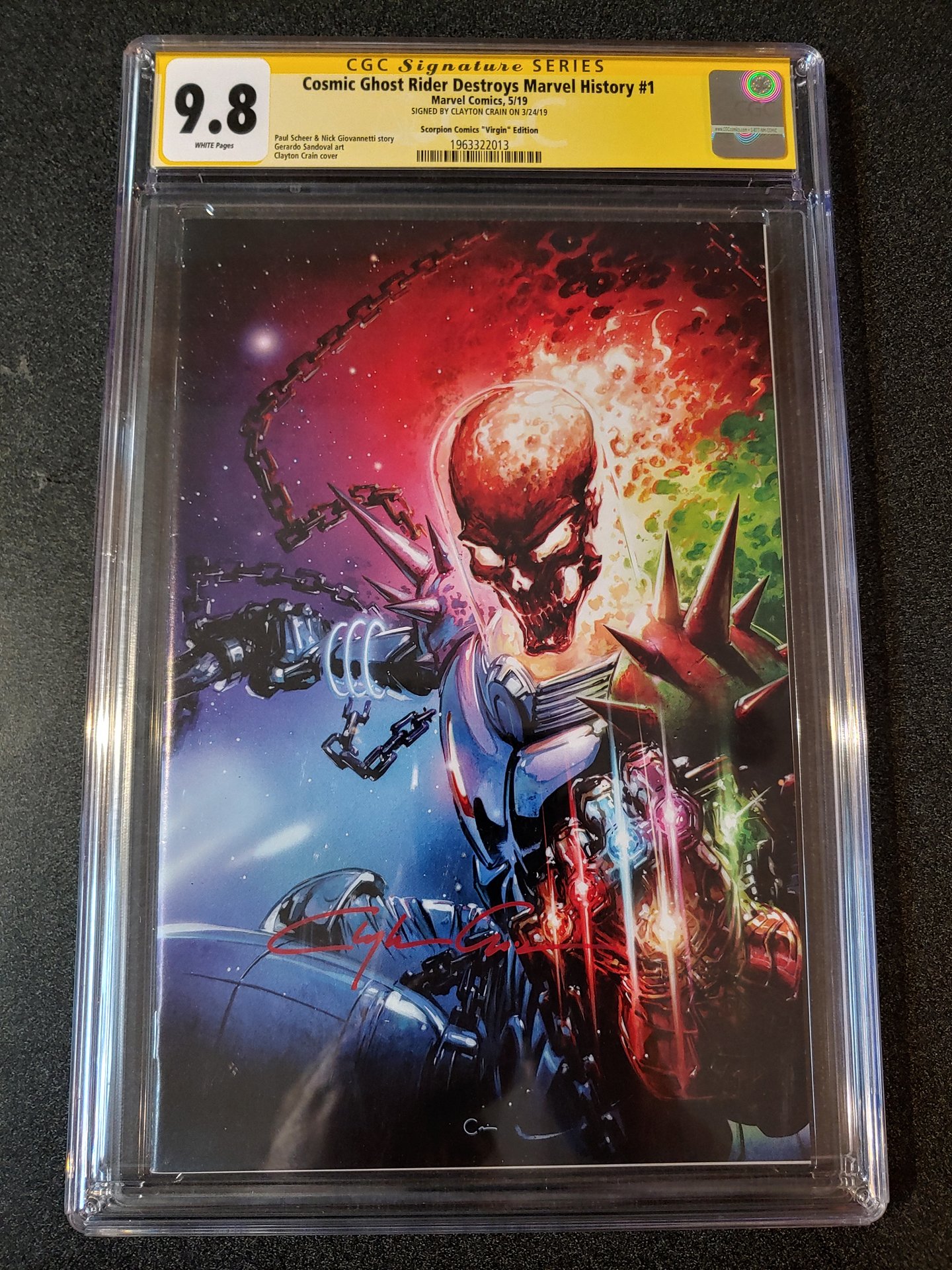 Cosmic ghost rider destroys marvel history #1 cbcs 9.8 scorpion comics virgin edition ss clayton crain