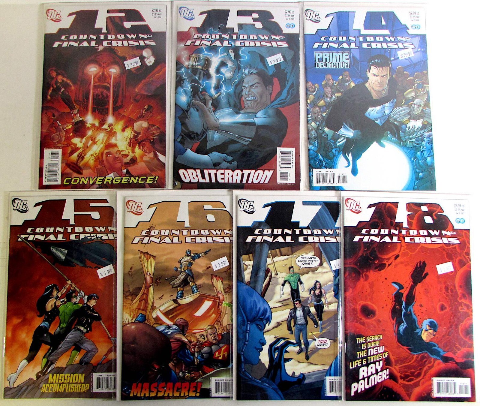 Condition: 1 Grade: Ungraded View All ListingsSee FeedbackAdd to Favorite SellersDESCRIPTIONCountdown to Final Crisis Lot of 7 #12, 13, 14, 15, 16, 17, 18 Marvel Comics 2008 Ungraded Condition Modern Age Comic Bo ... Read More