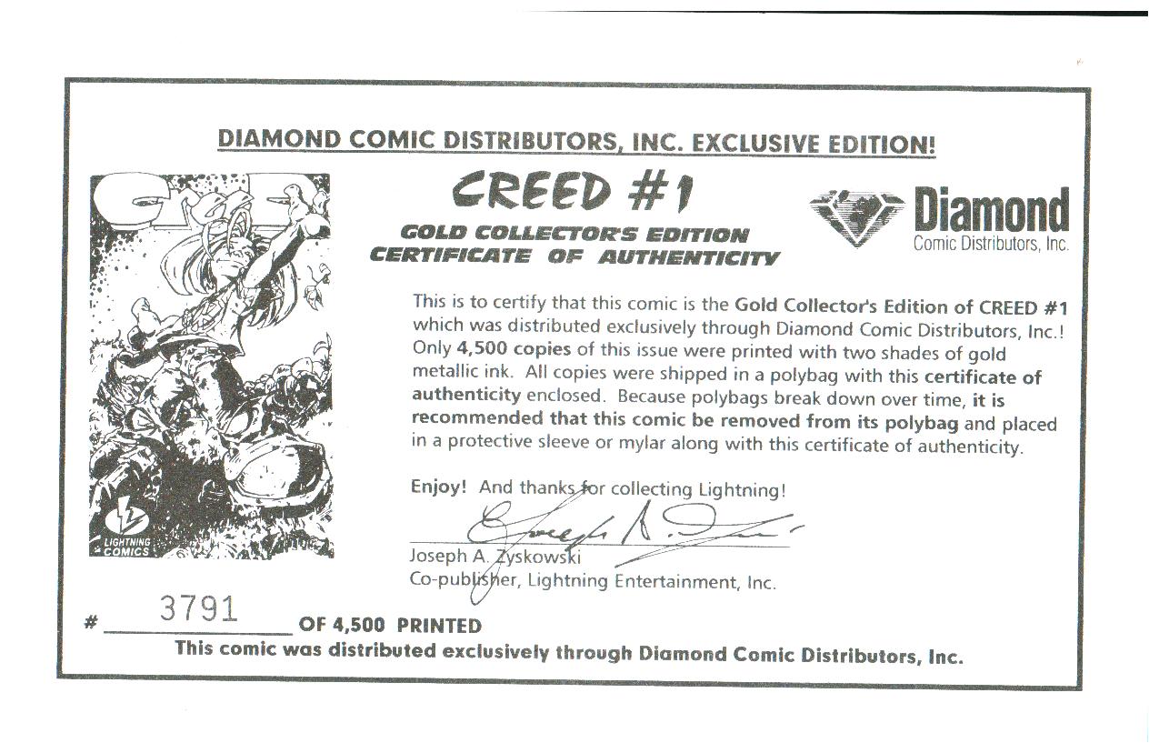 Creed #1 GOLD COLLECTOR'S EDITION with CERTIFICATE #3791 OF 4500