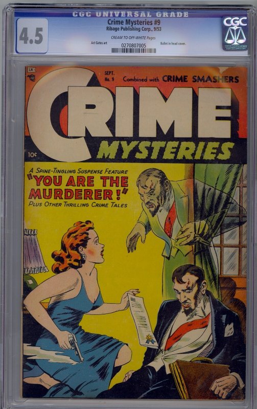 Crime Mysteries #9 1953 Ribage Publishing Corp CGC 4.5