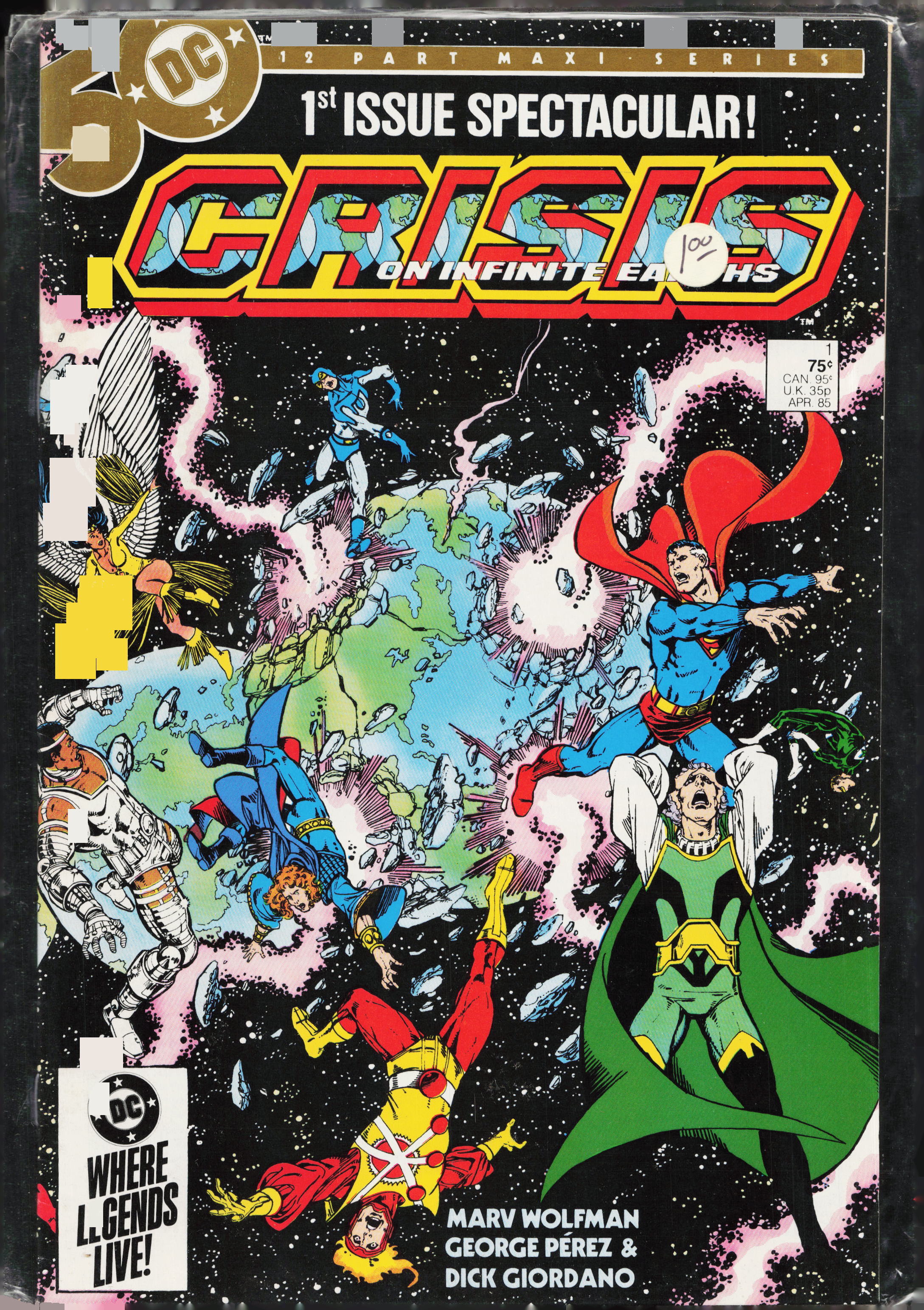 Crisis on Infinite Earths #1 (1985) First Appearance: Blue Beetle (Ted Kord) (in DCU), Pariah, Alex Luthor, Jr., The Monitor (full)