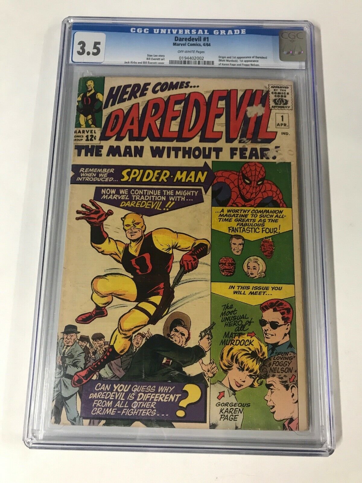 Daredevil 1 Cgc 3.5 Ow Pages Marvel Silver Age 1st Appearance