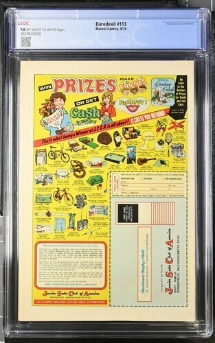 Grade: 9.8 Near Mint/Mint Daredevil #113 CGC 9.8. You will receive exactly what is pictured in the listing. Items will be shipped extremely carefully to insure they arrive in excellent condition.All S/H for this au ... Read More
