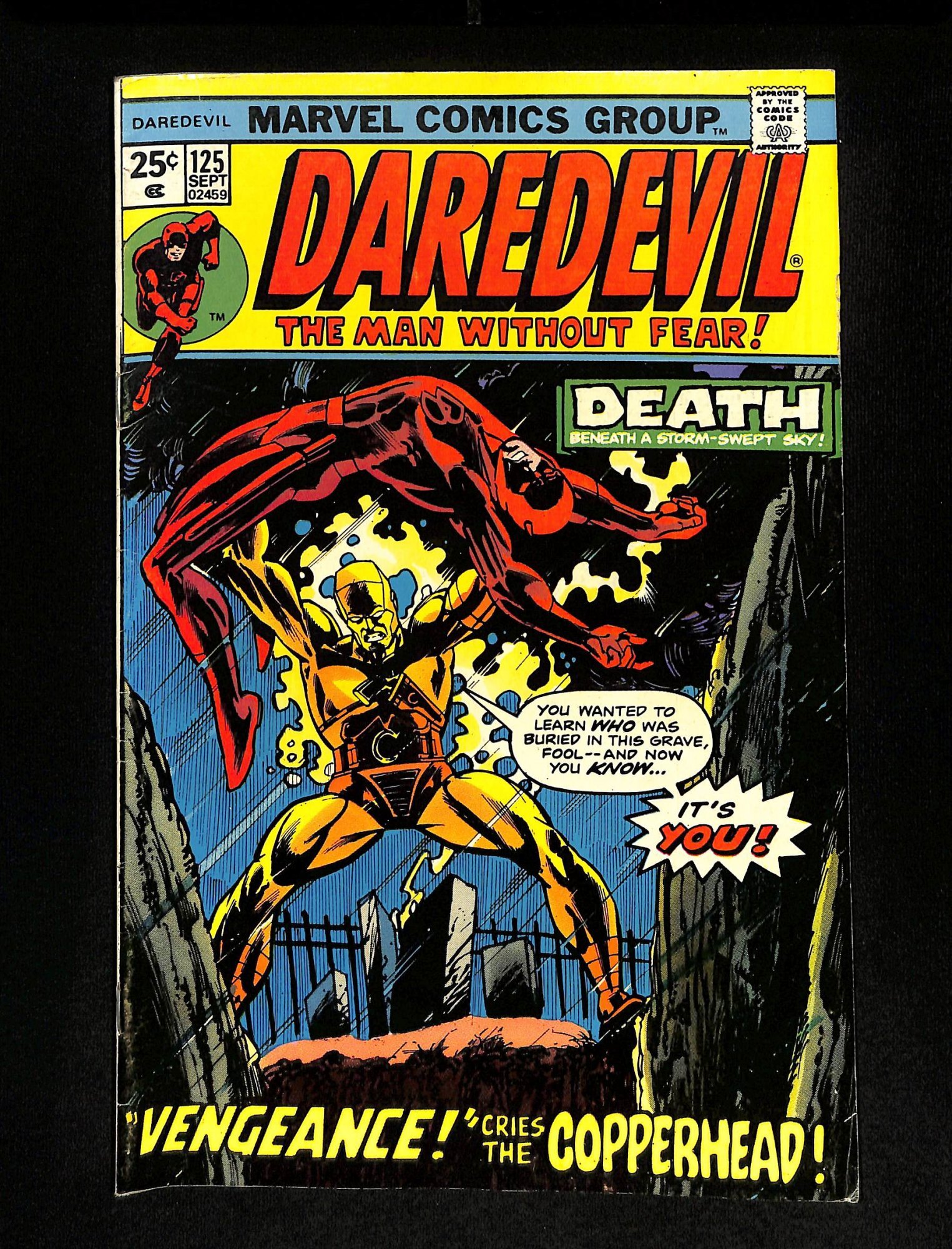 Daredevil #125 Vengeance cries the Copperhead! Avengers! Defenders!