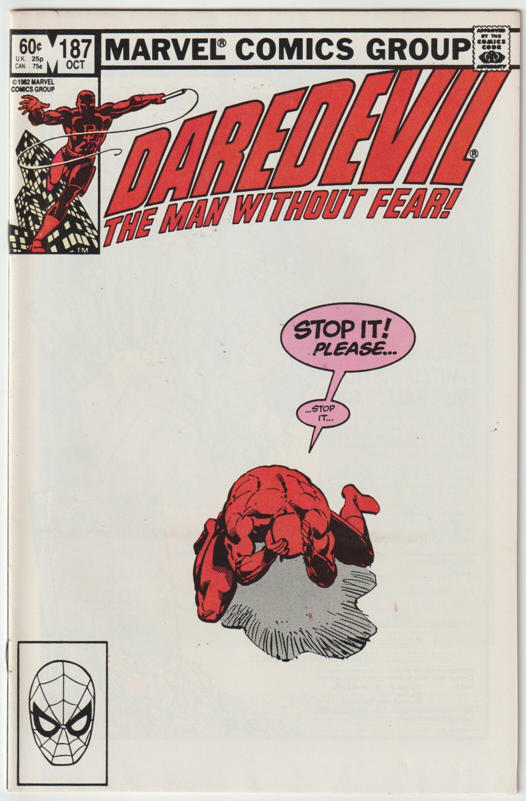 Daredevil #187 (Oct 1982, Marvel), NM- condition (9.2), Black Widow vs the Hand
