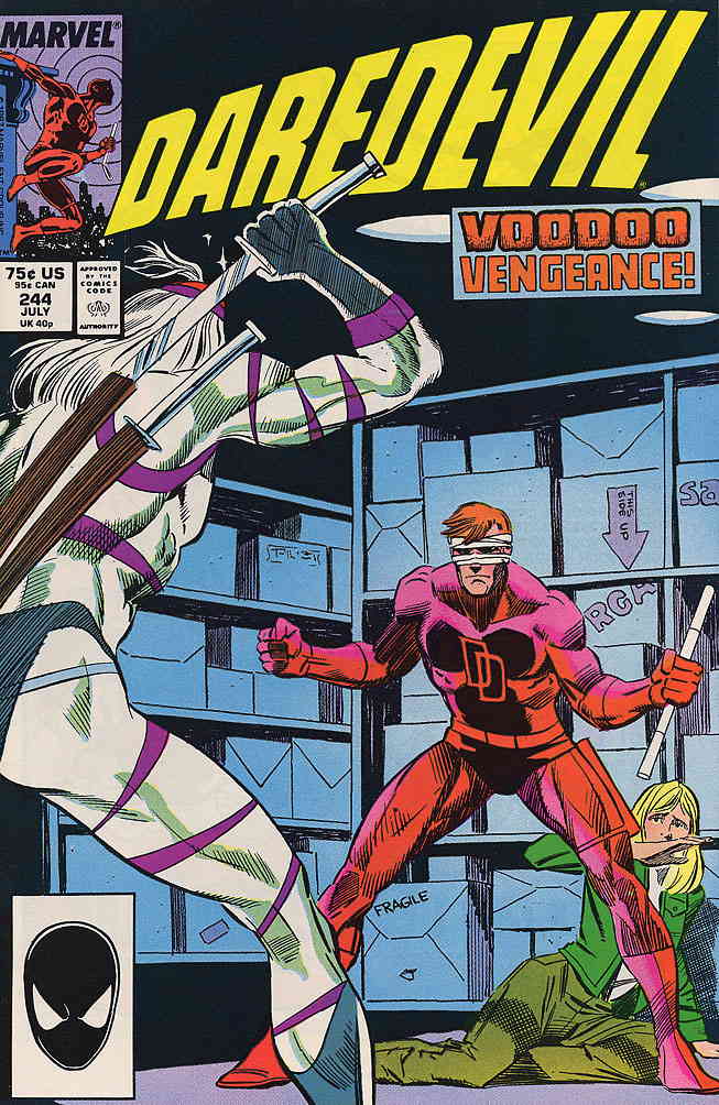 Item: Daredevil #244 | Publisher: Marvel | Cover Date: July 1987 | Writer: Ann Nocenti | Artist: Louis Wiliams | Appearances: The Nameless One | Storylines: Touch Me | With Economy shipping, each additional comic ships for just 50 cents more to customers in the USA. This listing contains a stock photo and information from ComicBase™ and © Human Computing. The stock photo is for reference only. If you would like to see a photo of the actual item, please message us prior to purchasing.Seller Information