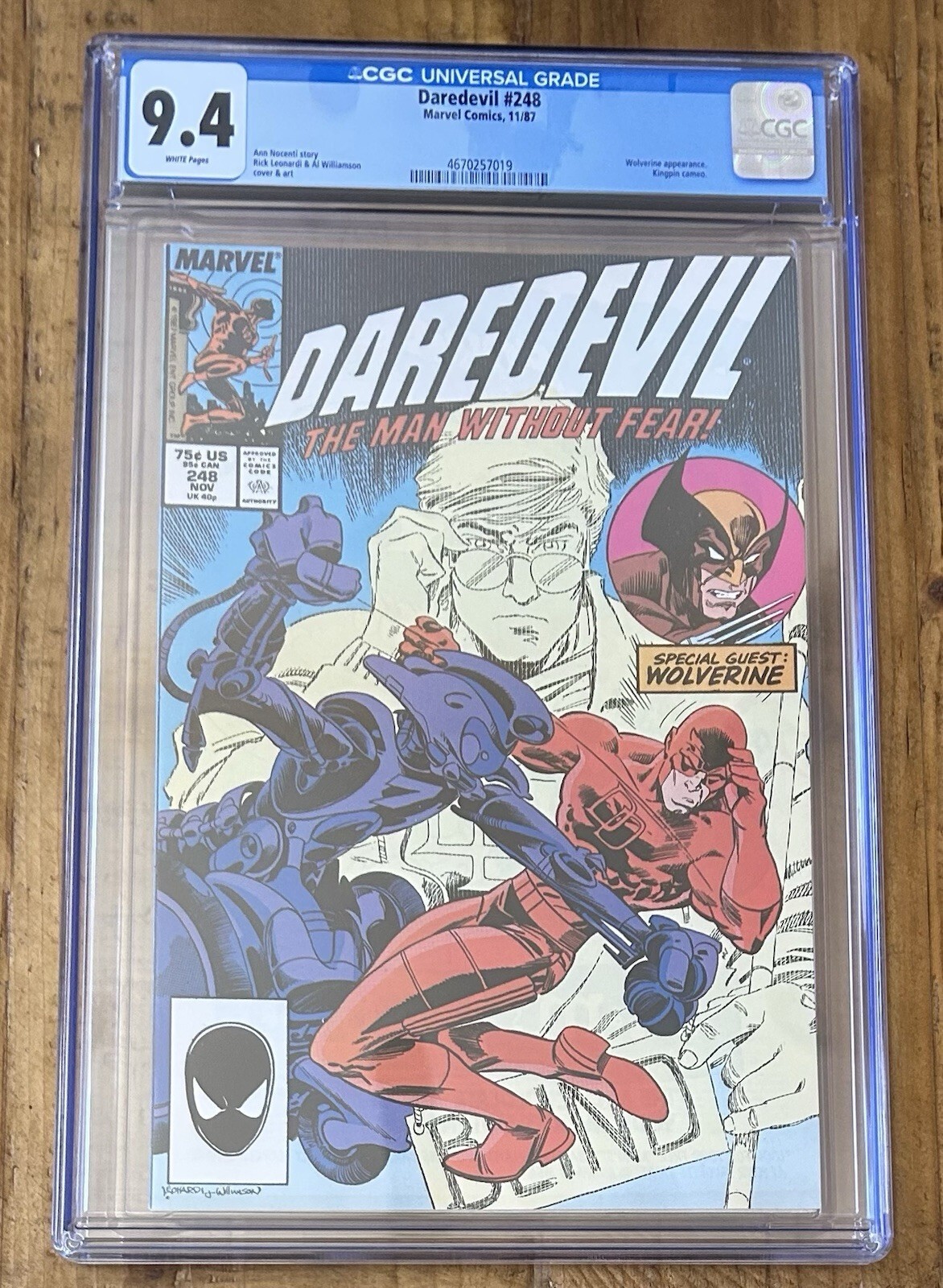 Daredevil #248 CGC 9.4 White Pages Wolverine Appearance 1987