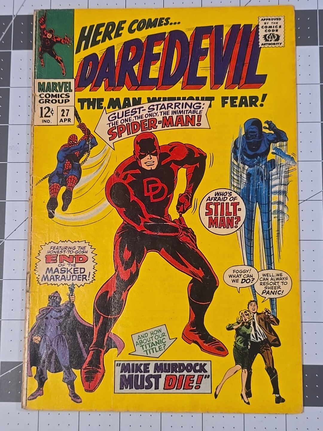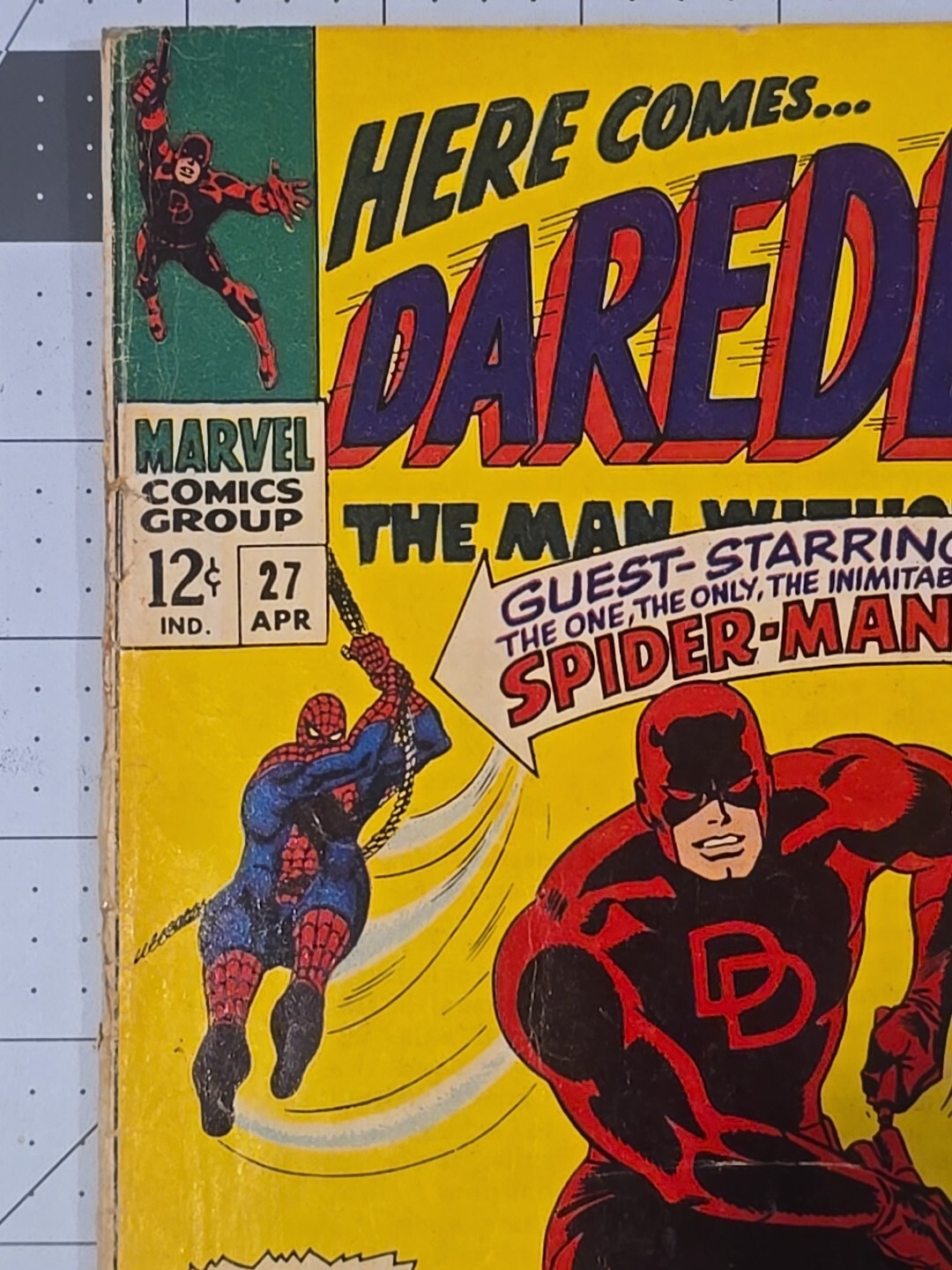 Daredevil #27 ?-Crossover Appearance By Spider-Man—April-1967 Silver Age Marvel See photos for condition: Ungraded comics up to a quantity of 8 are shipped and boarded in a Gemini mailer. Please Message us if you ar ... Read More