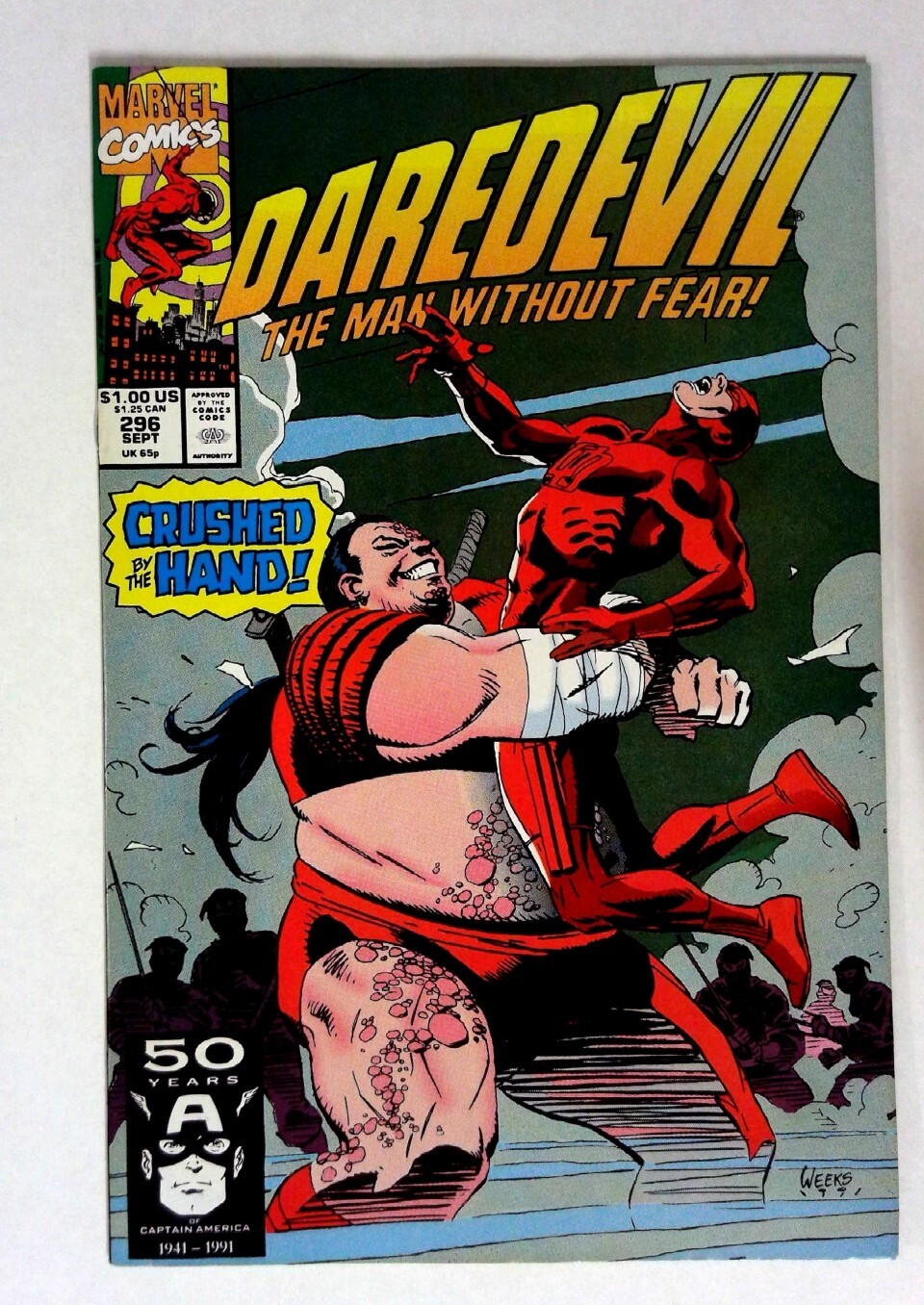 Daredevil #296 (1991) VF/NM The Hand Marvel Daredevil Daredevil faces off against a member of The Hand in an intense showdown. The story emphasizes the struggle against this dangerous organization. Cover art by Lee Weeks. TITLE: Daredevil ISSUE: 296 GRADE: VF/NM SKU: VE-33-146Seller Information