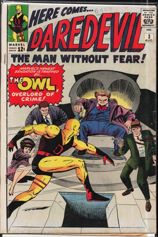 Daredevil #3 (1964) First appearance and origin: The Owlcenterfold detached at top staple