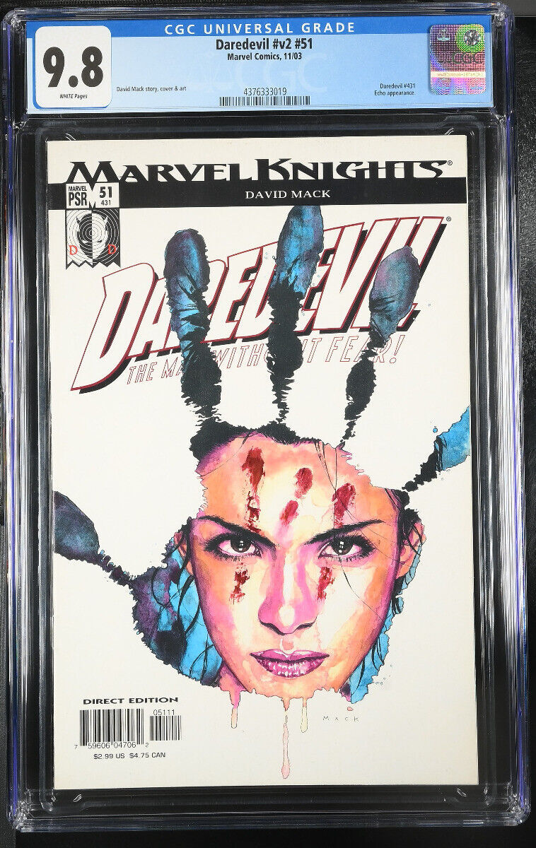 Daredevil Issue: 51 / Year: 2003 Condition: 9.8Cover art by David Mack featuring Echo. Publisher: MarvelSku: CTR-59-134 Over 100,000 mail orders processed! Buy with confidence.