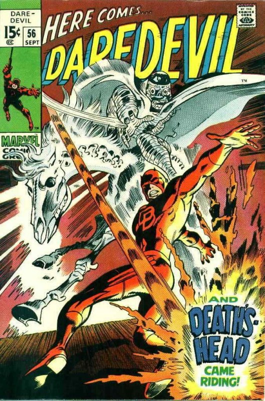 Item: Daredevil #56 Publisher: Marvel Cover Date: September 1969 Cover Artist: Gene Colan Writer: Roy Thomas Artist: Gene Colan Appearances: DeathÂs Head (Dr. Paxton Page), Mrs. Page, Garth, Debbie Harris St ... Read More