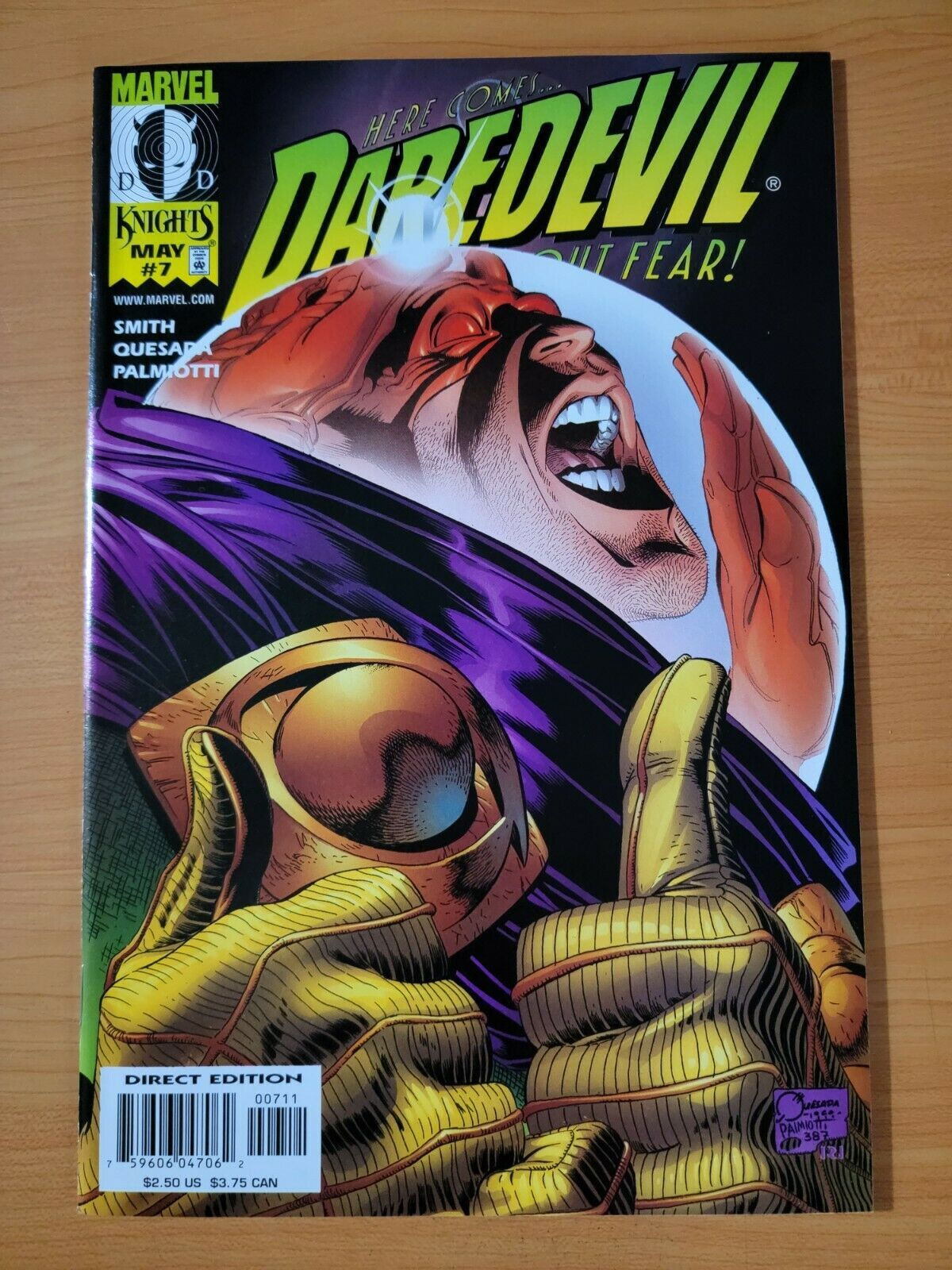 Item DescriptionDaredevil #7Publisher: Marvel ComicsPublished: 1999Item Grade/ConditionGrade: NEAR MINTFor more information about this grade and other grades, please see our grading standards.~ AS ALWAYS, WE TAKE HIGH DEFINITION PICTURES OF MOST OF OUR COMICS ~ For more detail use the ZOOM Function and check them out yourself! ~ Pictures are of the EXACT Comics in this listing!Shipping Info:United States: Orders of all sizes, big and small ship for a flat fee of - $3.50 ~WE LOVE FREE SHIPPING ~ This Standard May not apply to US Orders!~International: We use Calculated Shipping! ~ This insures that you get the LOWEST POSSIBLE COST! ~ Please give us one business day to calculate large orders! As a courtesy to our customers, we insure all orders over 50$ US ~ YOU DONT PAY EXTRA!Delivery TimeWe process and ship all orders within 1 business days. Once shipped, estimated U.S. transit time is 2-10 business days; international 14-21 business days.(Orders placed on Friday afternoon as well as weekends will be shipped the next business day as we do not ship on the weekends).PackingOmnomax Traders has mastered packing to ensure our orders of a "damage-free transport."Using the following methods, we have seen a nearly perfect 99% success rate for undamaged comics!Here is how our orders ship:Orders of 1-10 items:Bagged AND Boarded ( If Comic value is 10$ or More )Tightly secured between 2 stiff pieces of corrugated cardboardSealed on all 4 sides with strong packing tape (Items doesn't even wiggle).Protected in a large mailing envelope Orders of 10 and more:All items are bagged, and bottom item is in a board for extra protection of other items.All items are then placed together in a heavy bag. Tons of heavy packing paper &/Or Bubblewrap shields the items.Durable boxes hold the items*Now this method is nearly perfect! however we have seen damage happen to items ( only once or twice a year ) ~ this is often due to bad handling by the postal service. Always remember to contact us if this happens! we are committed to quality service!*Offers History
