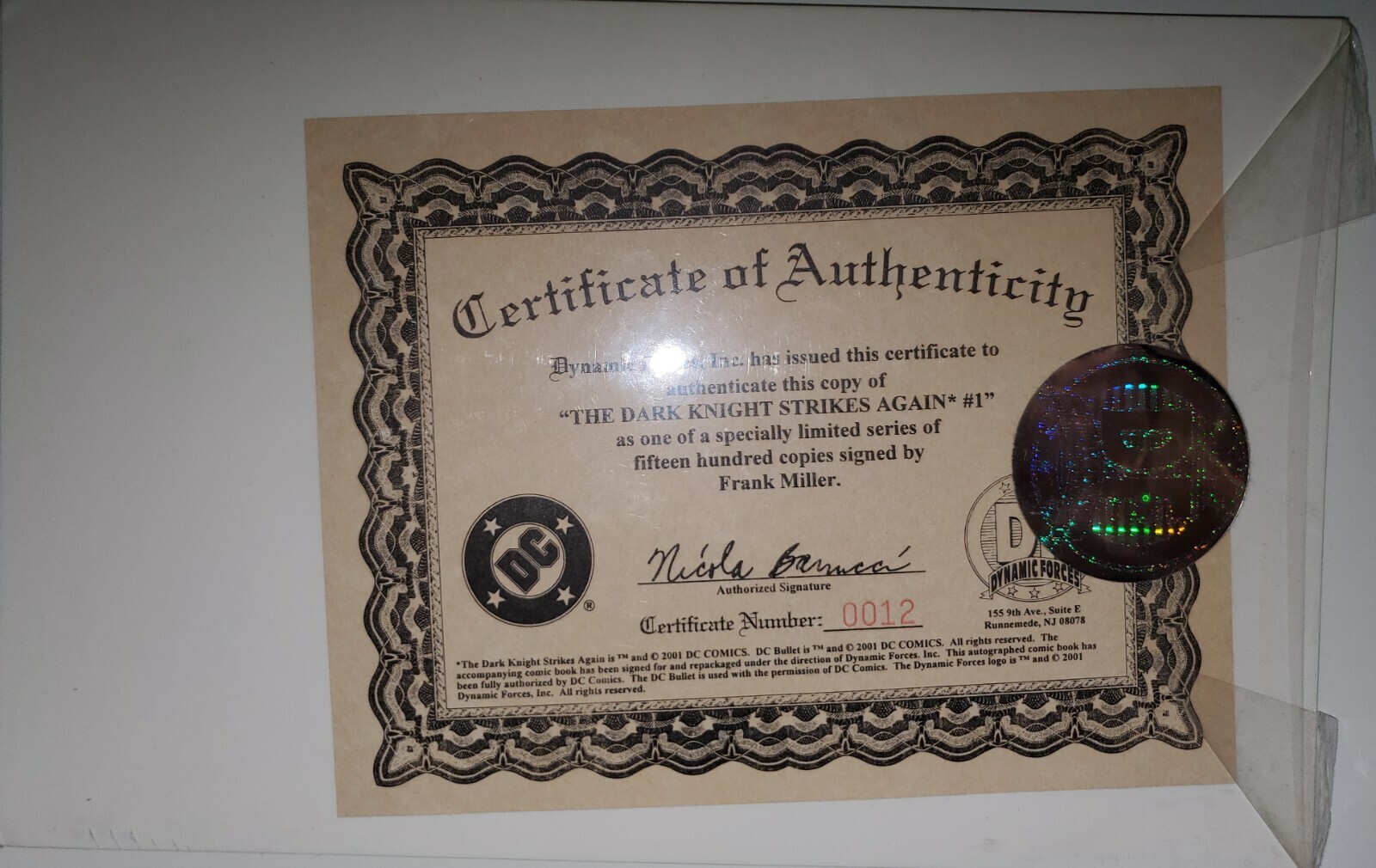 Dark Knight Strikes Again, The #1 DF COA #12/1500 Signed Frank Miller 2001 (NM)