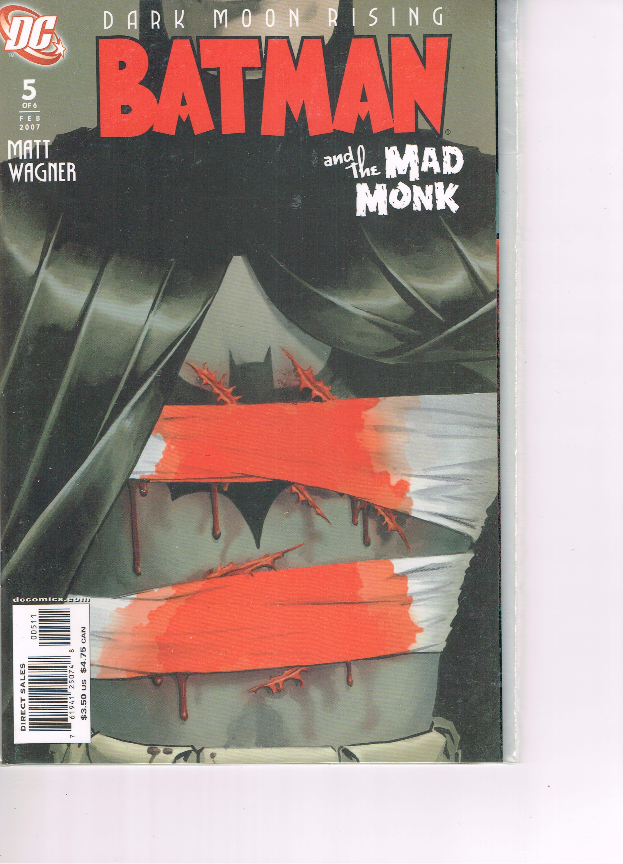 Dark Moon Rising - Batman and the Mad Monk #5 (2007)Published by DC Comics in VF condition. Shipping is $8.00 for priority flat-rate domestic mail which includes tracking and $50.00 insurance. I ship internationally so foreign winning bids are as per country. Multiple winning lots may be combined to save on shipping. I accept Paypal. I do NOT accept returns on this item. The value of the book is not worth the return shipping.