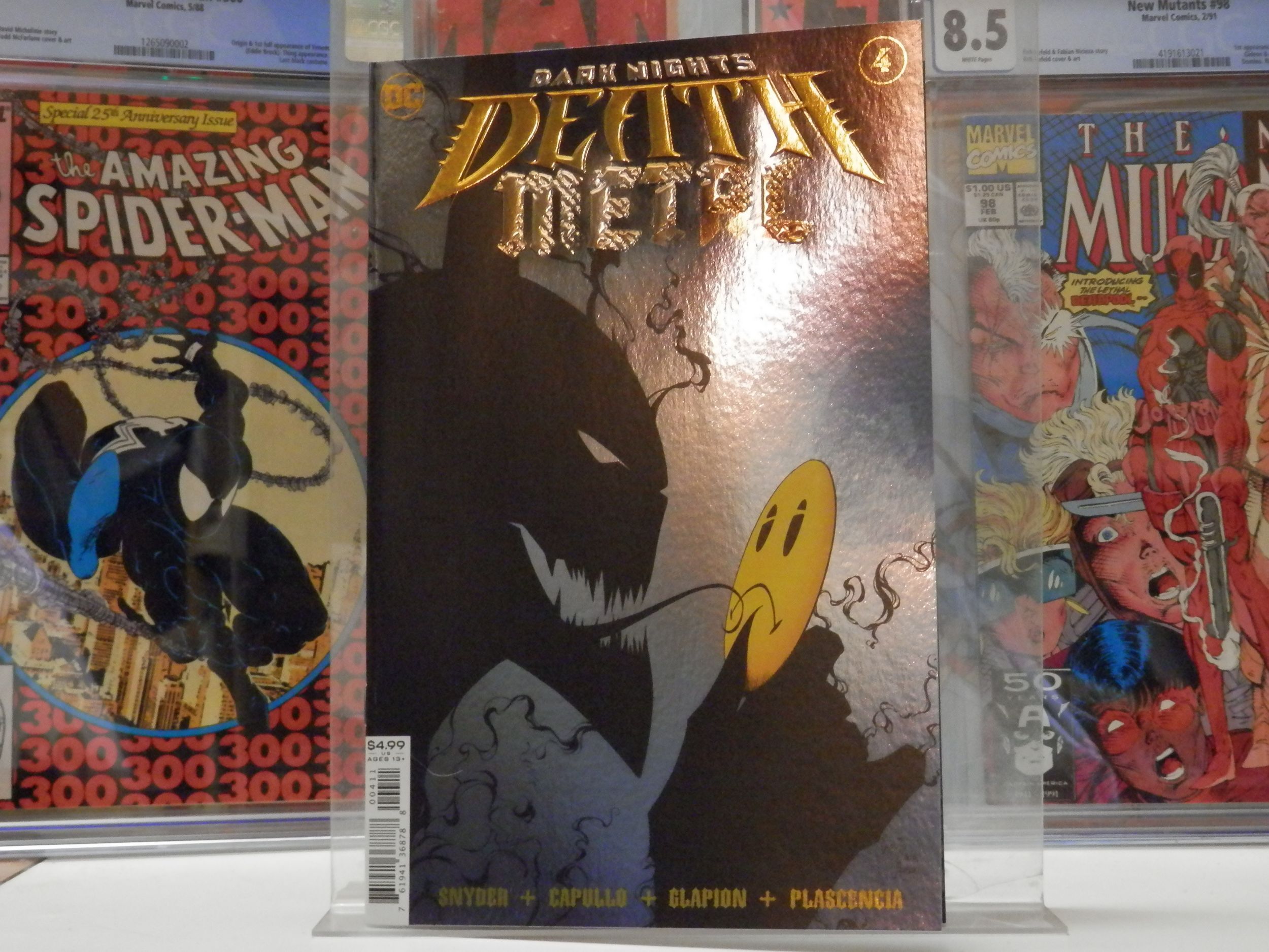 Dark Night's: Death Metal #4 (Foil) (2020) (9.8) - (NM/MT) I'm not a professional grader but I have a bit of experience as an avid collector. This goes without saying but this auction is ONLY for Dark Night's: Death Metal #4 (Foil) (2020) (9.8) (All others are for display only). Shipping is from Comic-Shield and extremely durable and safe