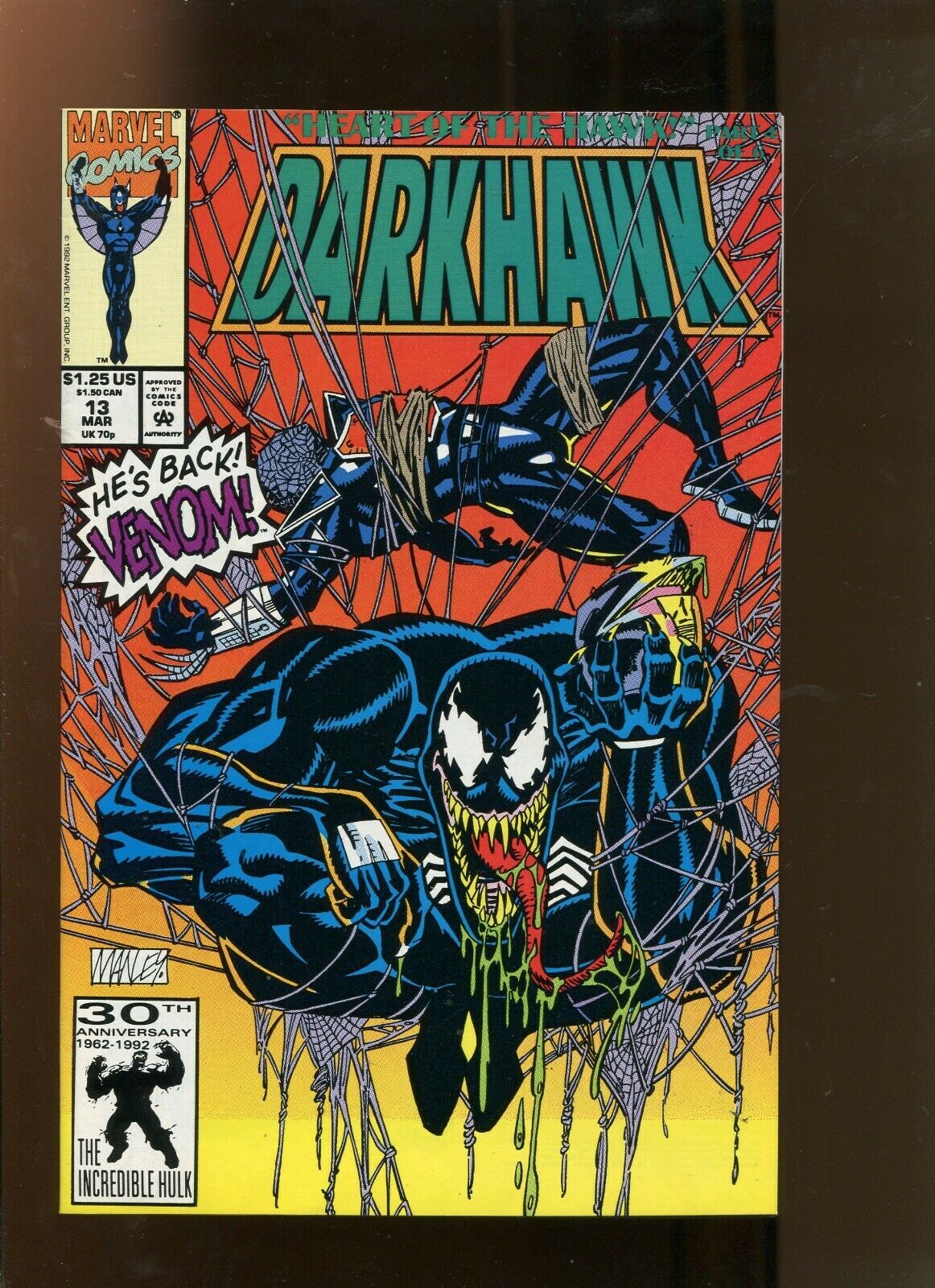 DARKHAWK #13 (9.2) HES BACK VENOM! 1992