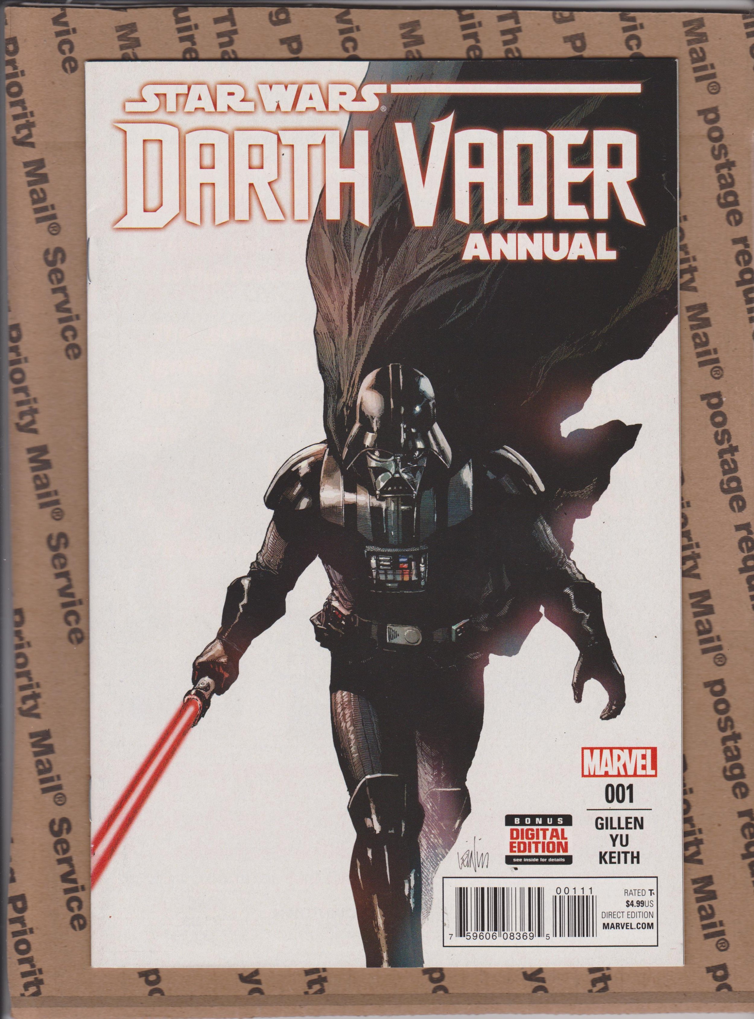 Darth Vader Annual #1 by Marvel Comics copyright 2016. I have graded the comic book, using the Overstreet Grading Guide, at VERY FINE with the following defects: Light stress marks along the spine. The corners starting to round. There is light yellowing of the pages.Seller Information