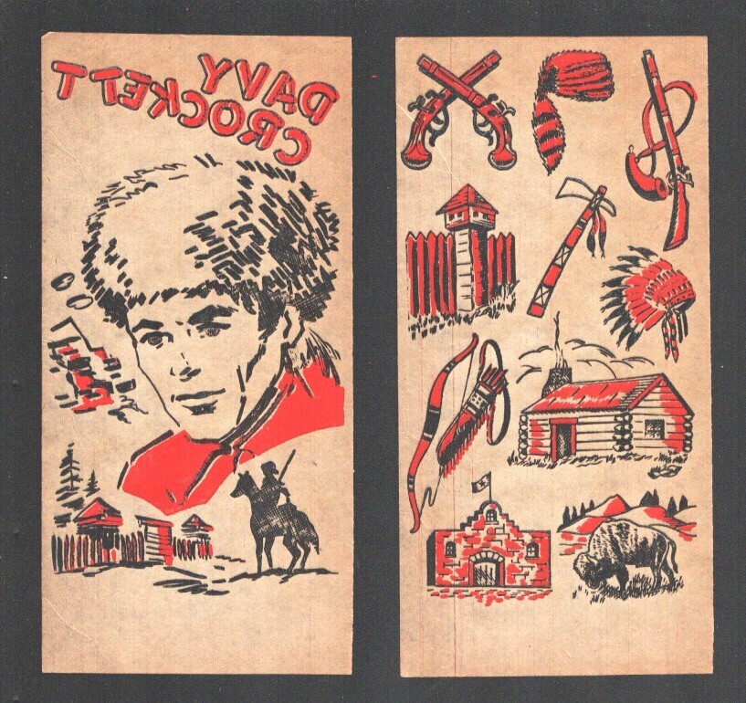 Grade: FNDavy Crockett T-Shirt Iron On Transfer 1955-Davy Crockett at fort with separate sheet of frontier images-FN -Rare t-shirt design -Iron it on to your favorite T-shirt -Davy Crockett at fort with separate sheet of frontier images Grade: FN SKU: EB-08-033