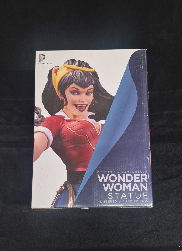 DC Collectibles DC Bombshells Wonder Woman Statue. Previously displayed in a smoke-free home. Box has shelfwear.You will receive exactly what is pictured in the listing. Items will be shipped extremely carefully to insure they arrive in excellent condition.All S/H for this auction varies. I do combine items for shipping. Insurance is included with all shipping. For International buyers please note any custom fees charged by your country are your responsibility. I will always try to accommodate any special requests.If there are ever any problems regarding your purchase please contact me prior to putting in claims, leaving negative feedback, or giving out low ratings. I aim for 5 out of 5 stars all the time and will always do my best to fix any issues. I always make sure my customers are happy!!!!I ship fast and secure, just check my feedback. Please feel free to E-mail me with any questions or if you need larger scans. Please check out my other auctions!! Happy Bidding. Good Luck.Seller Information