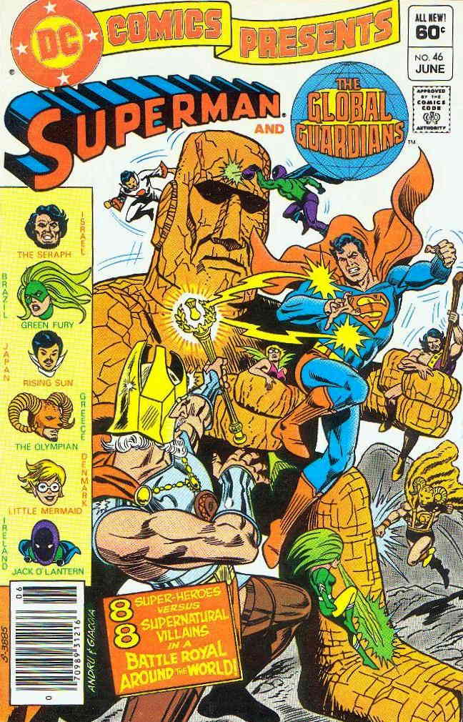 Item: DC Comics Presents #46 | Publisher: DC | Cover Date: June 1982 | Writer: E. Nelson Bridwell | Artist: Alex Saviuk | Cover Artist: Ross Andru | Appearances: Global Guardians, Doctor Mist, Seraph, Olympian, Litt ... Read More