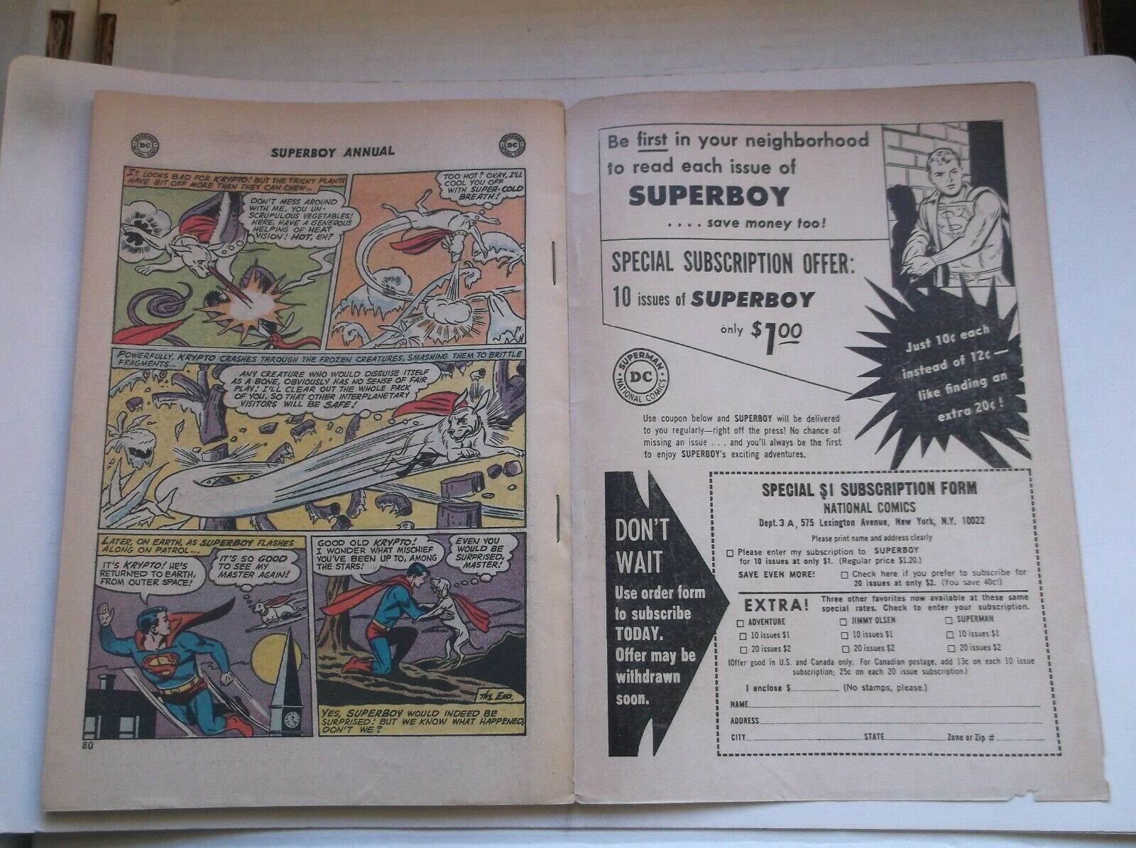 It is in VG+ (4.5) condition.DC: SUPERBOY GIANT ANNUAL #1, FEATURING: KRYPTO THE SUPER-DOG ORIGIN, 1964!!!