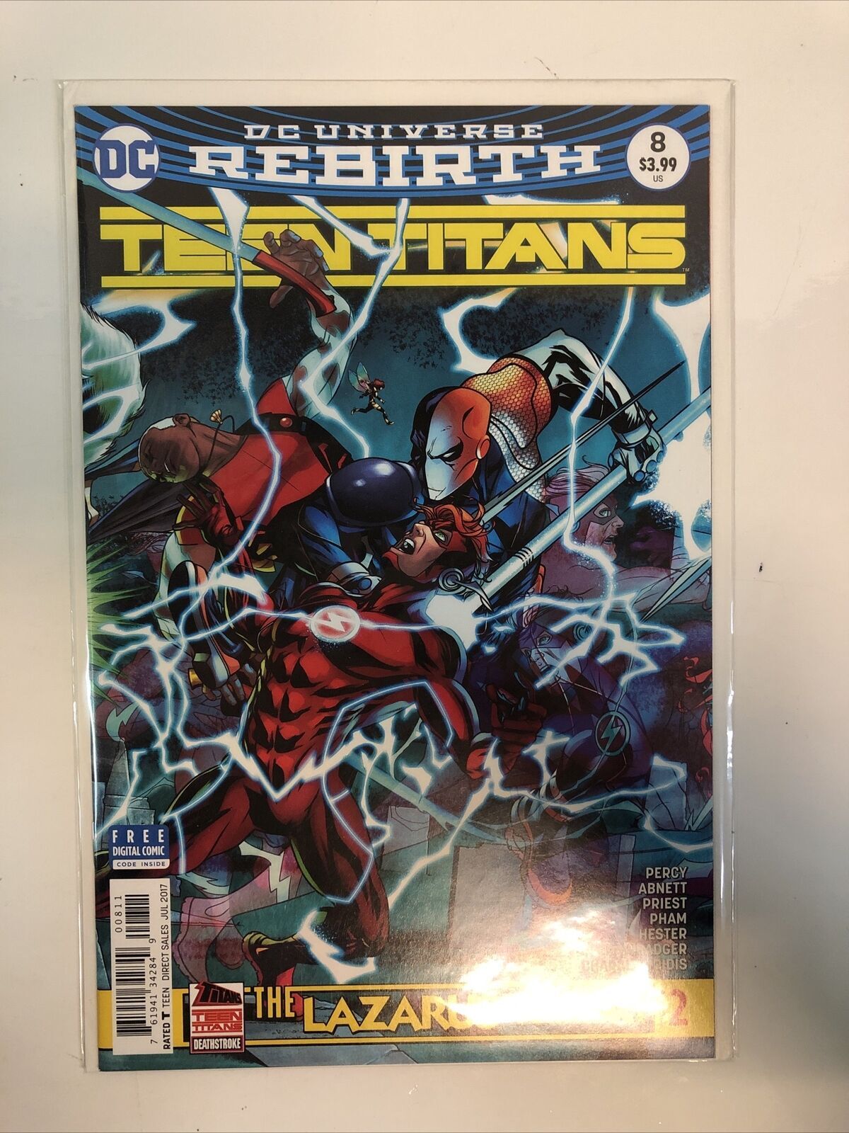 Grade: 9.0 Very Fine/Near MintDC Universe Rebirth: The Lazarus Contract (2017) Part # 1-2-3-Finale (VF/NM) DC is a very good condition comic book in the modern age (1992-now) era. It features Deathstroke and Flash in an action-packed adventure with Titans and Teen Titans. This single issue comic book is published by Titan Comics and belongs to the DC Universe tradition.This comic book is graded 9.0 Very Fine/Near Mint, making it an excellent addition to any comic book collection. The genre of DC Universe Rebirth: The Lazarus Contract (2017) Part # 1-2-3-Finale (VF/NM) DC is action, superheroes, adventure, and supernatural. It is a great read for fans of the DC Universe and is a must-have for collectors.
