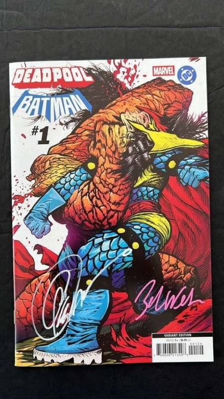 DEADPOOL BATMAN #1 DANIEL WARREN JOHNSON VAR 2X SIGNED CAPULLO/WELLS NYCC COA NM