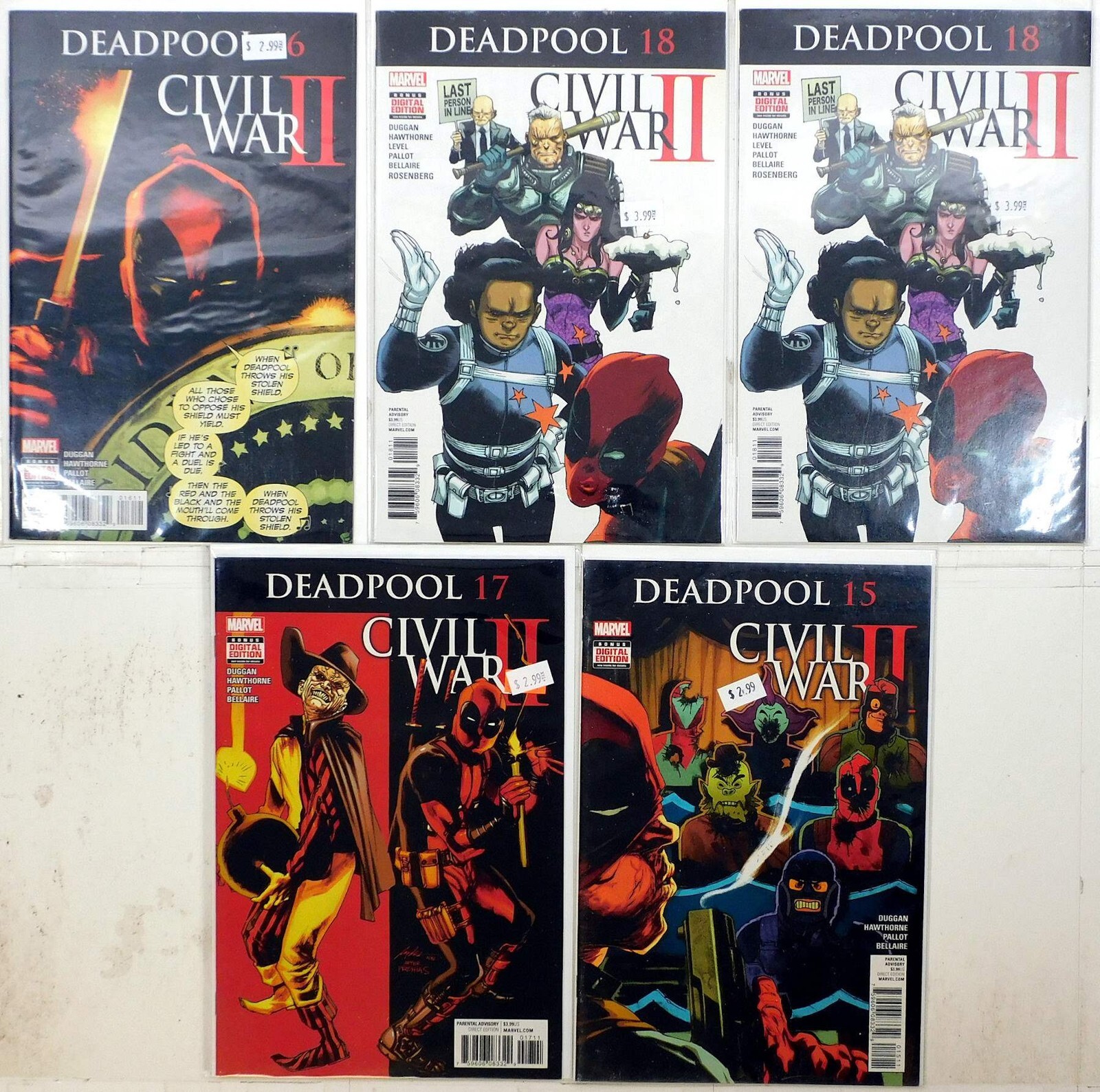 Deadpool Lot of 5 #16, 18 x2, 17, 15 (2016) Marvel Comics 1st Print Comic Books