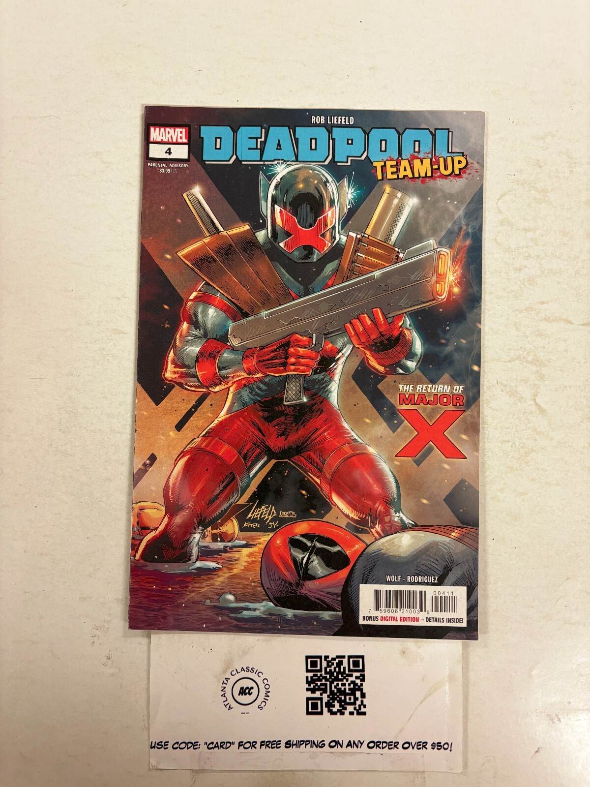 If you combine auction items with BIN (Buy It Now) items, the shipping rates divert to our combined shipping rate tables & we do not offer free shipping. * Important Stuff! ***If you combine listings that offer free shipping with listings that do not, our combined shipping rates (listed below) will be applied to the whole order, and the order will not ship for free unless all items apart of the combined order offered free shipping on their individual listings.**In Addition, if you combine multiple items, the combined shipping rates we'll use are whatever the most expensive displayed option is. Domestic Combined shipping rates:2-5 Books $6.98 6-12 Books $7.9813-20 Books $8.98 21-30 Books $9.9831-45 Books $10.98 46-65 Books $11.9866-85 Books $14.98 86-115 Books $19.98*If you have over 2 TPB/Graphic Novels in one invoice an additional charge of $1/per 3 TPB's will apply.** If your order is over 10 total listings, we'll charge an extra $1 per 10 items. So 10-19 items would be the above combined shipping rate + $1. 20-29 + $2, etc.International Shipping:International Bidders / Buyers are welcome. Please wait before paying so we can invoice you with the correct shipping charge. Feel free to request an exact amount from us prior to buying as Hip's shipping calculator can be incorrect.Condition Information:We attempt to provide an accurate grade to any single issue we sell. This grade can be found in the listing title using one of the following distinctions: GD (2.0), VG (4.0), FN (6.0), VF (8.0), NM (9.4), or a combination of two of them. On lots of books, in general, almost all of the issues we sell are going to be in AT LEAST VG condition.That being said, please look closely at the provided images of the book(s) you are buying; as you will receive exactly what is pictured.* Less Important Stuff! *We accept payments via Hip managed payments. Local Pickup is available in Atlanta.We buy comic book collections of any size, graphic novels, toys, original art, Funkos, & records! Feel free to message us for more details.Please reach out to us if ANYTHING about the item you buy isn't satisfactory before leaving less than positive feedback. We will be happy to resolve any issues and would appreciate the opportunity to do so before something less than positive is said. We're only human and are totally capable of making mistakes so please offer us the courtesy of coming to us first so we can fix whatever is/was wrong with your order.All pictures/scans are of the books you will actually be receiving & all books are sold "As Is". We DO NOT use stock photo's.Return PolicyALL Returns ARE accepted. We charge a 15% restocking fee for a non-shipping damaged OR disclosed defect return. Meaning, if you'd like to return a book that arrived safely as pictured with no additional or undisclosed defects, that's when the restocking fee is assessed. We reimburse original shipping if an item is returned because it arrives damaged or with an undisclosed defect. We do not reimburse original shipping if an item is returned "just because." We do not reimburse return postage in either scenario.Seller Information