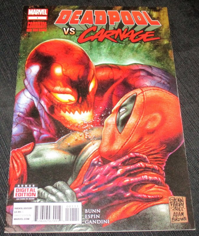 Deadpool vs. Carnage #1 (2014) Nm- Note: all of our books listed will start off at .99 cents start auctions, don't miss out All defects were considered when grading was determined. No major defect on the books (un ... Read More