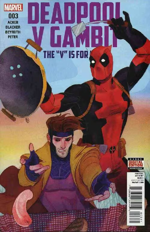 Grade: 9.2 Near Mint-Deadpool vs gambit (2016 marvel) #3 cvr a kevin wada item number: comm-009643 � the con's gone south, fast, which leads to�a cookout? � yep - if you wanna see wade and remy slinging meat, this book's for you! � plus�we take a deep dive into the life of�the scrambler? Parental advisory