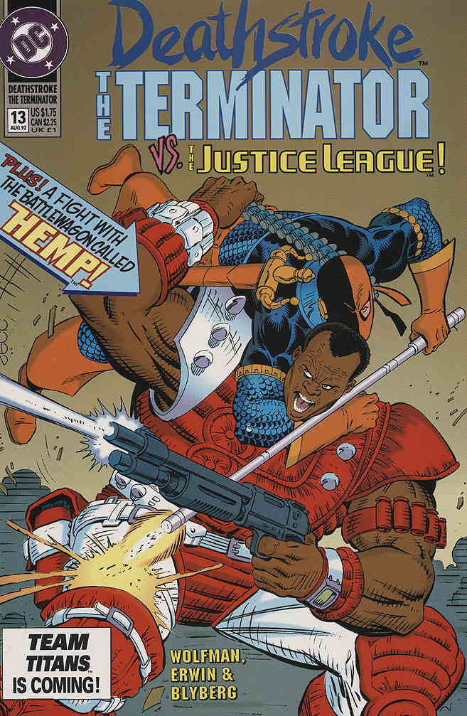 Item: Deathstroke the Terminator #13 | Publisher: DC | Cover Date: August 1992 | Writer: Marv Wolfman | Artist: Steve Erwin | Cover Artist: Mike Zeck | Appearances: JLA, Superman, Flash III, Green Lantern II, Aquama ... Read More