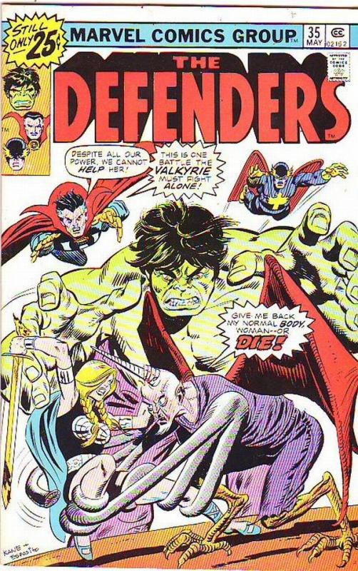 Defenders, The #35 - This is One Battle the Valkyrie Must Fight Alone! Characters Hulk, Dr. Strange, Valkyre, Nighthawk Stories "Bring Back My Body to Me to Me!" Issue #35 - Vol. 1 Era: Silver Age Date: May-76 ... Read More