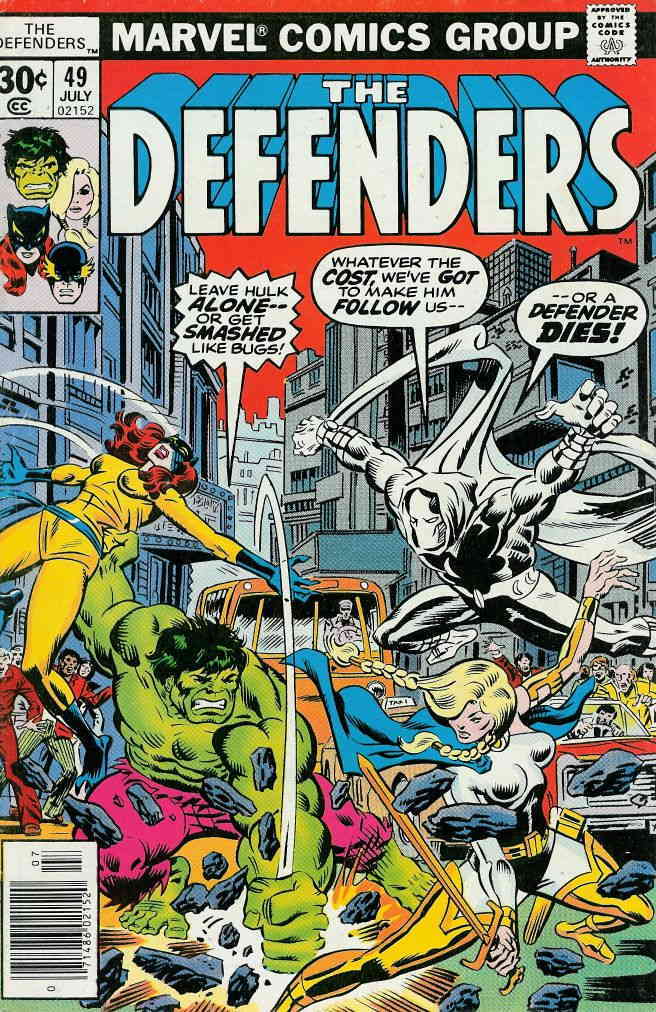 Item: Defenders, The #49 | Publisher: Marvel | Cover Date: July 1977 | Writer: David Anthony Kraft | Artist: Keith Giffen | Cover Artist: Al Milgrom | Appearances: Zodiac II, Moon Knight, Scorpio, Hulk (Bruce Banner ... Read More
