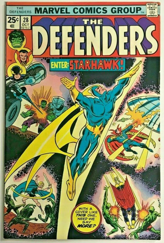 DEFENDERS#28 FN/VF 1975 FIRST STARHAWK MARVEL BRONZE AGE COMICS