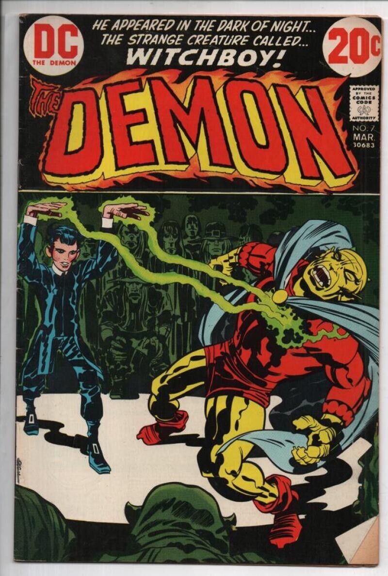 DEMON #7, FN, Jack Kirby, 4th World, WitchBoy, 1972 1973, more JK in storeThe DEMON #7.... Name of Comic(s)/Title?: The DEMON #7... Publisher: DC Comics...... Art by/Featuring/Stories?: Featuring a comic called the DEMON..Artist(s): Jack Kirby....Writer(s): Jack Kirby....Front Cover: Jack Kirby....Rated : PG13+...Story(s): "WitchBoy"...... Grade of item? : This issue is in FINE condition.... Created when? : 1972 series, made in 1973... Front Cover description : Great cover gloss, with some handling and spine wear, with dog-ear on the bottom right corner... Back Cover description : Great cover gloss, with some handling and spine wear... Page quality description : All intact, with off-white to very light tannish color... Tape or writing?: No... How are staples?: Staples are secure.... Flat & supple : Yes.... Don't get caught napping...Will come bagged & boarded... 1st Printing... ...Lots more BRONZE AGE, DEMON, & Jack Kirby items in our store. Be sure to check out all of our current on-going auctions! Lots of great product at affordable prices! Bookmark our listings with (control + D). Lots more coming in the next few weeks... Check out the scan(s). If you like this? Our store name is HighQualityComics...aka HQComics...We have been doing mail-order since 1988.We guarantee Absolute Satisfaction on All Orders! Shipping in a box. Combine auctions to save on postage. INTERNATIONAL CUSTOMERS : I use Hip's global shipping program.