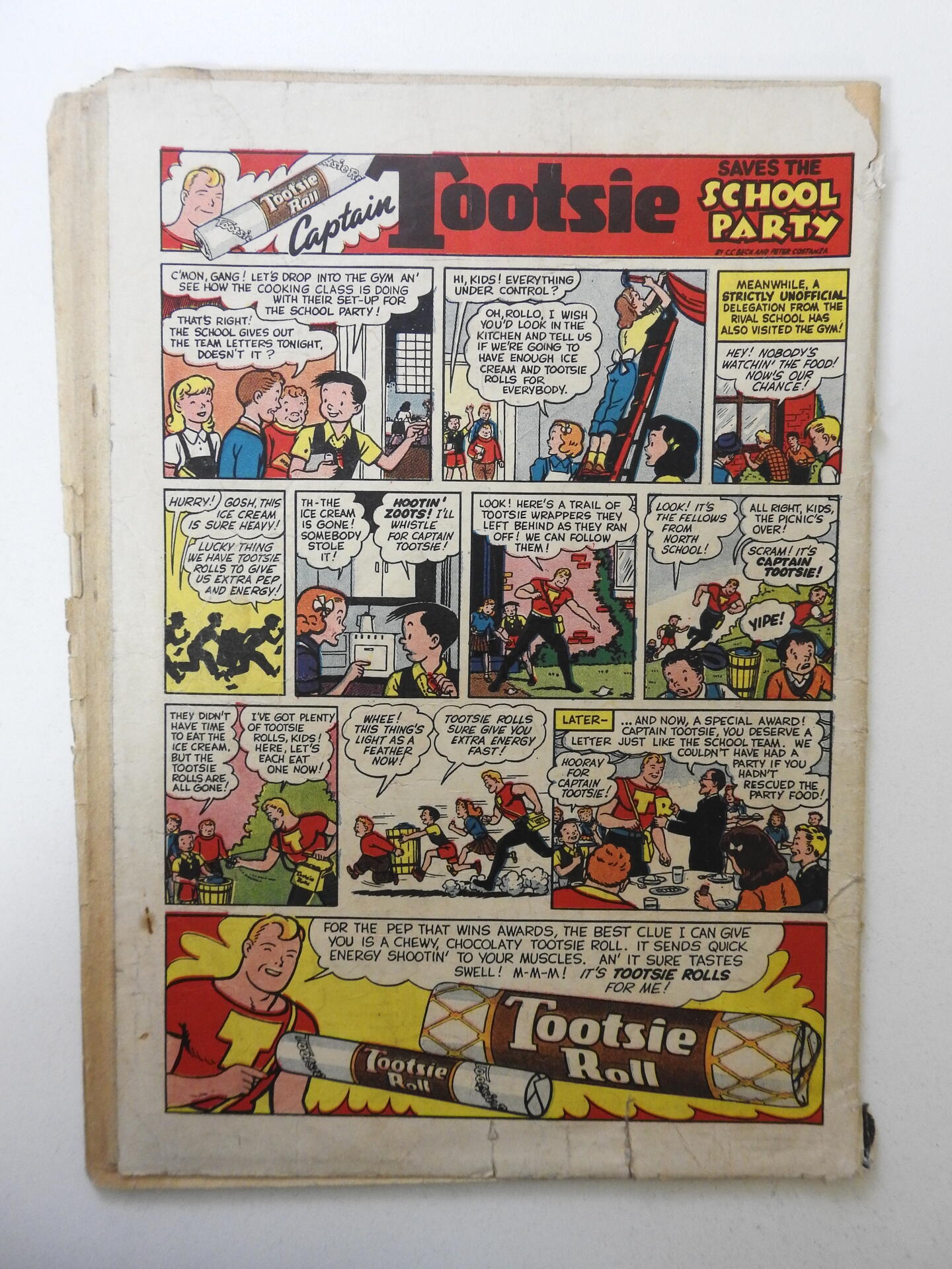 Detective Comics #125 (1947) Coupon cut out, centerfold detached at both staples & reattached with tape, moisture staining