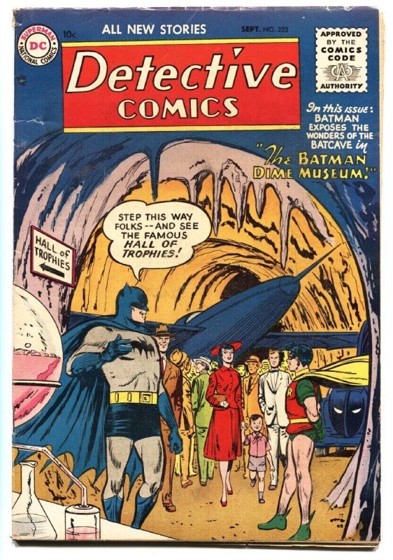 Detective Comics #223 1955--BATMAN ROBIN-Captain Compass-Comic Book -Batman and Robin -Captain Compass also appears -Batcave and Batmobile cover. -Tiny tear at top spine. Title: Detective Issue: 223 Grade: VG/FN SKU: DHV-06-217Seller Information