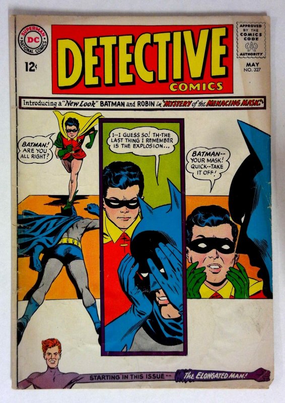 Detective Comics #327 (1964) VG Batman DC Detective Comics Featuring the new look of Batman and Robin, this issue presents 'Mystery of the Menacing Mask' with The Elongated Man character introduction. The cover disp ... Read More