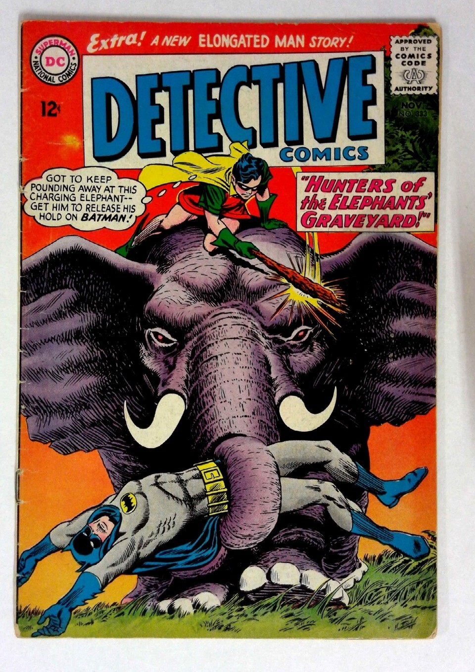 Detective Comics #339 (1965) VG/FN Batman DC Detective Comics Batman and Robin face a thrilling adventure against a mighty elephant on the cover. This issue features the story 'Hunters of the Elephants' Graveyard!' and includes an extra Elongated Man story. TITLE: Detective ISSUE: 339 GRADE: VG/FN SKU: VE-33-097Seller Information