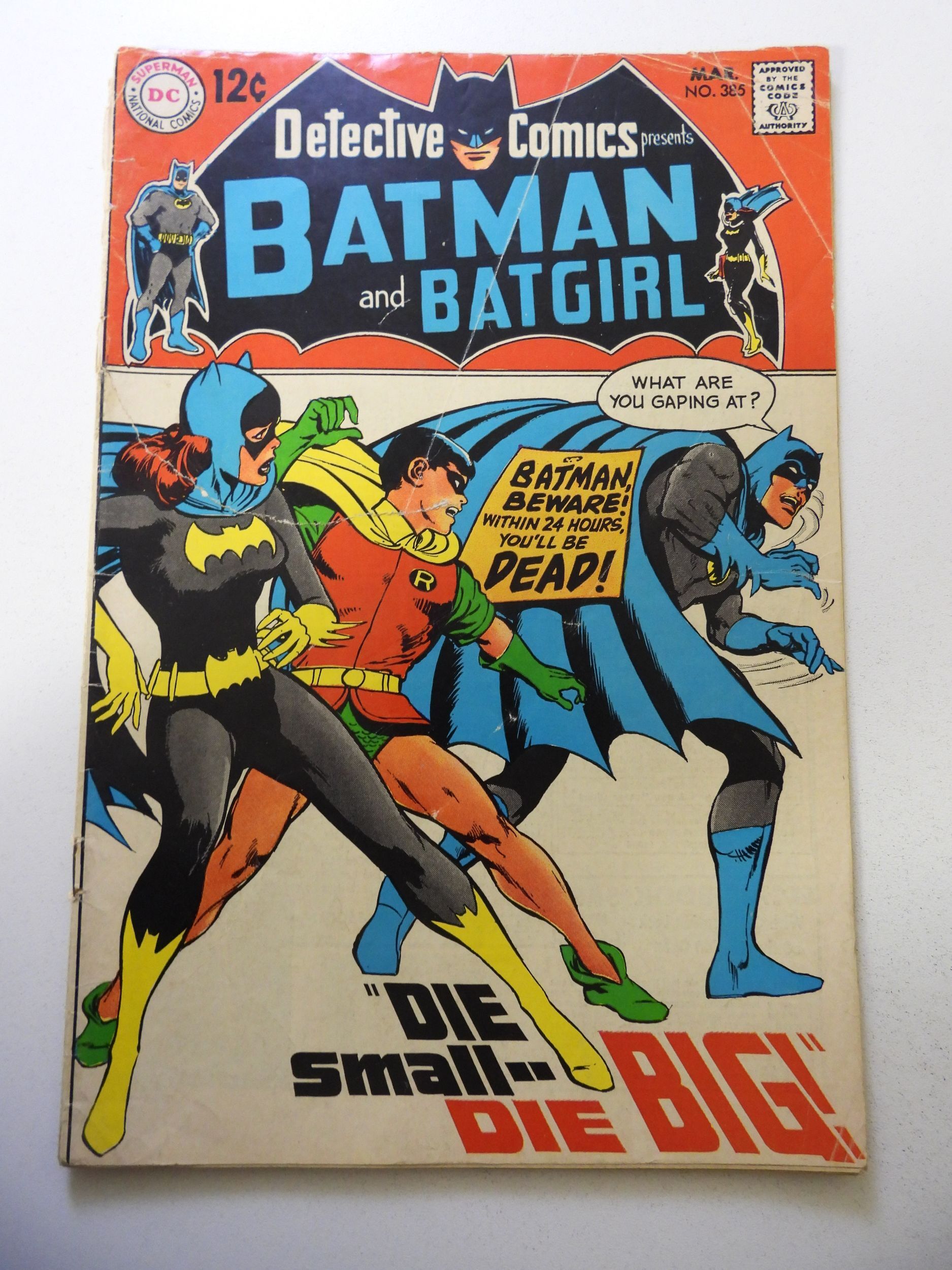 Detective Comics #385 (1969) GD/VG Condition centerfold detached at one staple