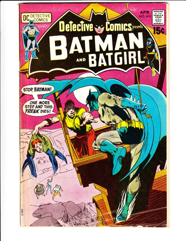 Detective Comics #410 - One More Step and this Freak Dies! ARTIST - Neal Adams APPEARANCE - Batrgirl Solo Story The cover does not sit straight as it pulls in a tad. Characters Batman, Batgirl Stories "A Vow fro ... Read More