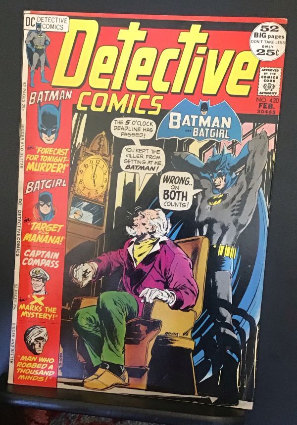 Detective Comics #420 - You Kept the Killer From Getting Me, Batman! Wrong On Both Counts! APPEARANCE - Batgirl back-up story. CONTENT - 52 page super-sized issue. From the one-owner high-grade Boca collection fro ... Read More
