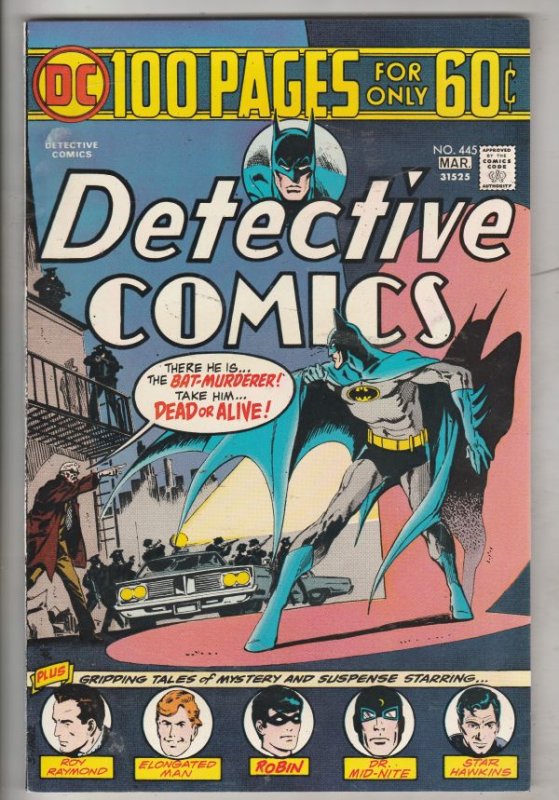 Detective Comics #445 - 100 Pages For Only 60c Batman APPEARANCE - Ras Al Ghul! APPEARANCE - Dr. Midnight Golden-Age story, Star Hawkins, Elongated Man, Roy Raymond TV Detective From the one-owner high-grade Boca ... Read More