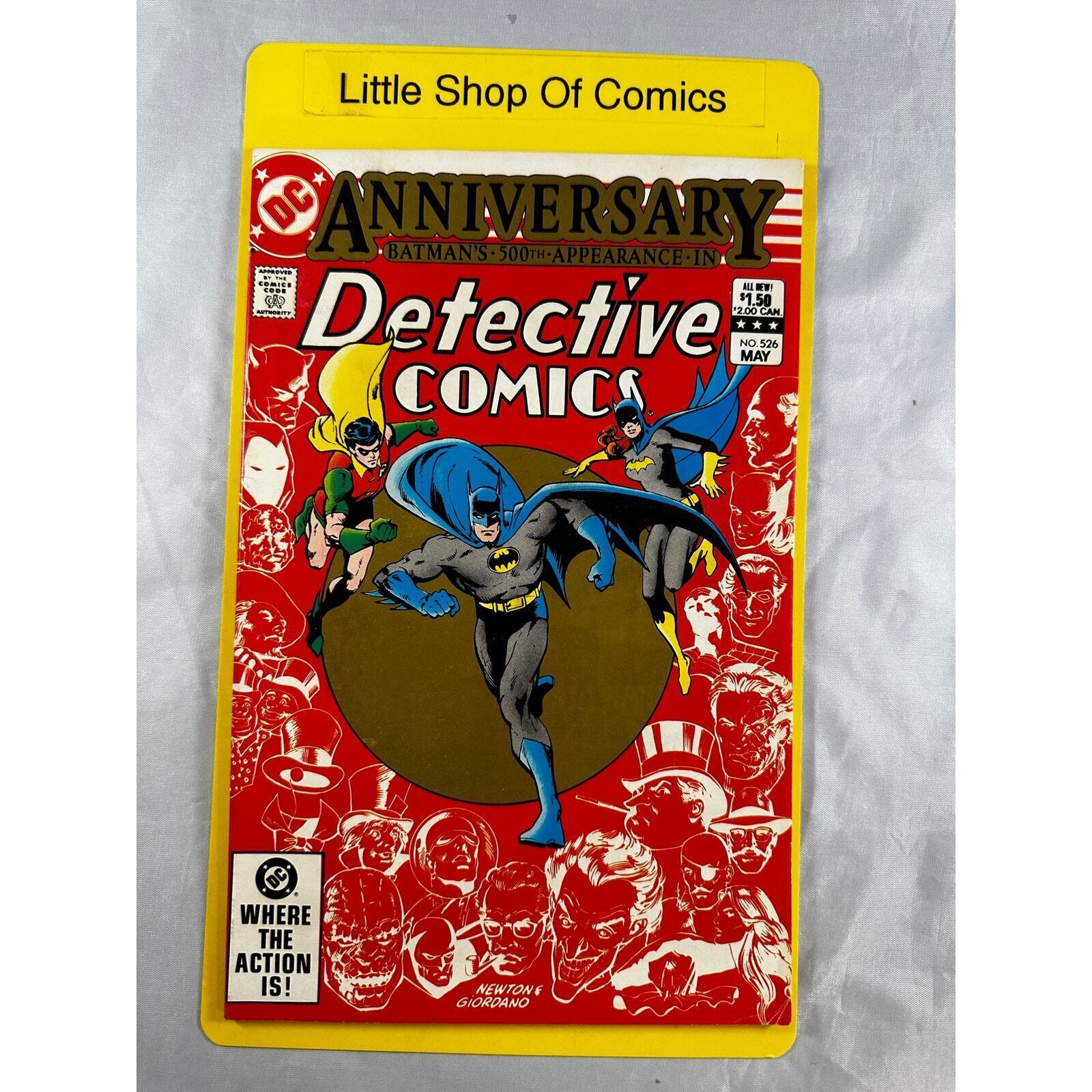 Grade: 9.0 Very Fine/Near MintThis listing is for one (1) copy of Detective Comics 526 SPECIAL NOTE: This book is in VFNM or better condition.ALL COMICS ARE BAGGED AND BOARDEDPLEASE READ: Paypal users must be verified with a Confirmed Shipping Address.We package comics in a T-FOLDER and take the extra step to protect your comic by taping the book down to prevent movement.Local pick-up is on Thursdays from 11 am to 5 pm. Thank you for looking at our listing, this is how we make a living if you have any issues with your item(s) please get in touch with us first so we can help you with resolve that issue. Again, thank you for checking us out.