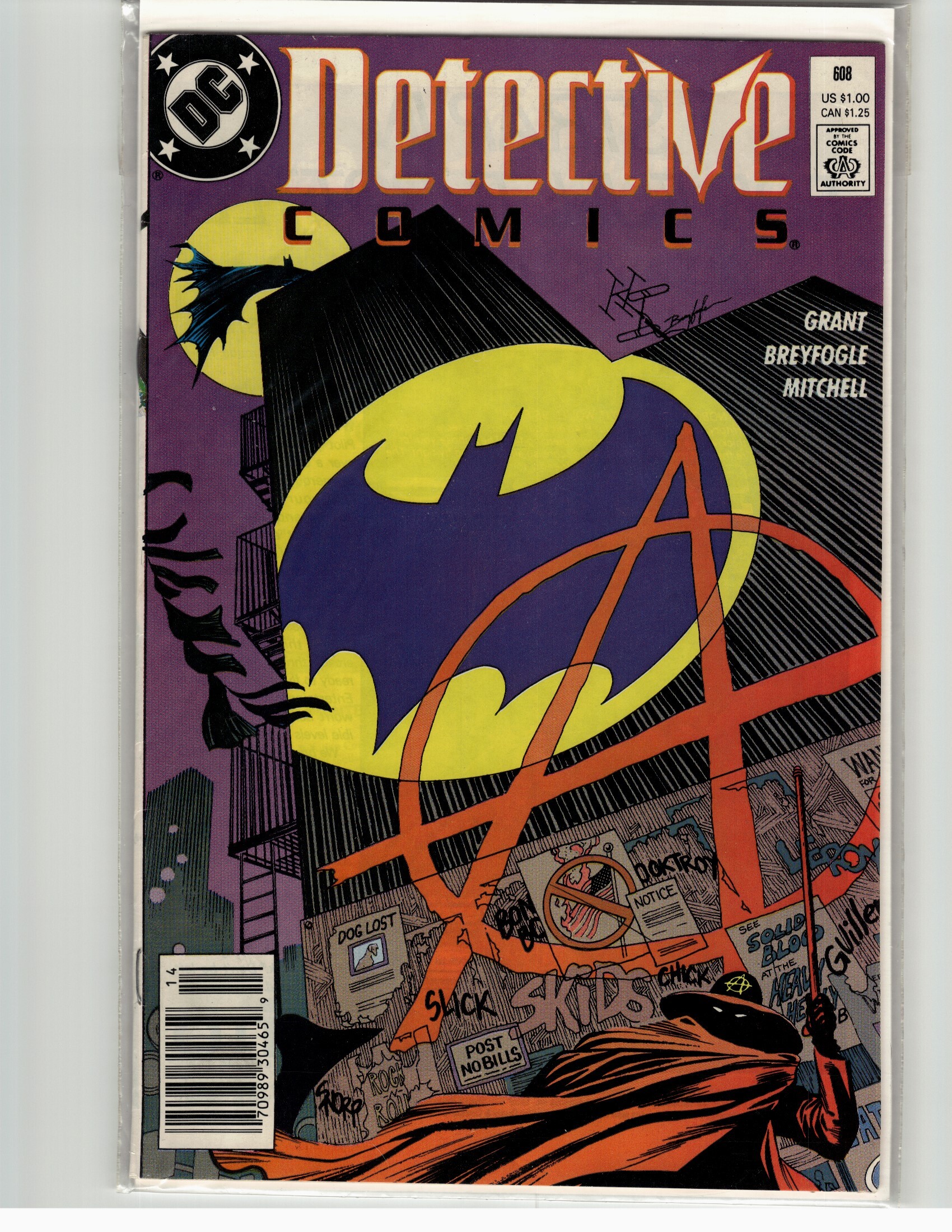 Detective Comics #608 (1989) First Appearance: Anarky (Lonnie Machin) Note: Ignore any vertical lines shown in the image (its just the scanner).Seller Information
