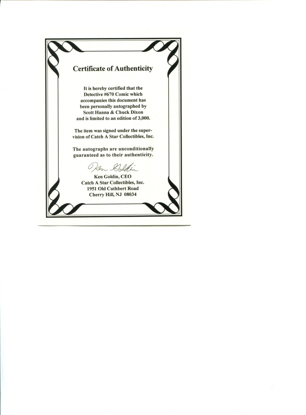 Detective Comics #670 - Signed Scott Hanna & Chuck Dixon (8.5) 1994Size: 7" x 10"This item was uploaded by __LM__.WE COMBINE SHIPPING!!! Either wait for us to send you an invoice after you commit to buy or, if it makes you pay right away, message us back and we'll refund the excess charge. Buy as many single comic books as you want for one low flat shipping rate in the United States! International will be charged exact according to size and weight.If you have any specific questions or requests, please ask us prior to ordering and we'll get back to you as soon as we can.If there are any problems with your order whatsoever, please message us before leaving feedback and we'll be happy to work with you to fix the situation! We ship worldwide, combine purchases, and charge exact shipping. The price may vary based on size, weight, and location. If you are automatically overcharged for shipping, message us and we'll be happy to revise the invoice or refund you the excess amount. If you have any questions regarding shipping, please message us.International Buyers - Please Note:Import duties, taxes, and charges are not included in the item price or shipping cost. These charges are the buyer's responsibility.Please check with your country's customs office to determine what these additional costs will be prior to bidding or buying.Payment can be made by PayPal and credit cards directly.120,000+ items in total in my Hip store!Frequently Asked Questions:When are your operation hours?Our in office hours are Monday - Friday, 11 am - 8 pm. We are not open on weekends, so if you send us a request on Friday evening we won't get back to you until Monday afternoon. Please don't take it as us ignoring you! We will work on your request Monday and get back to you as soon as we can. Also, if you order from us on a Friday evening or Saturday morning we won't start processing your order until we open on Monday. That means on Monday it will be pulled and prepped for shipping, then picked up by the postman on Tuesday morning.When will you ship my item? The tracking hasn't moved.We realize you're eager to get your item, so if the tracking hasn't moved in a few days please don't be concerned. We give the postman a lot of packages daily, sometimes as many as 100, so he does not scan each item for us upon pickup as he says it would be too time consuming for him to do so. If you get a tracking number from us, that almost always means your item was picked up by the postman the next business day. The USPS is also imperfect. There are times when the tracking won't even show movement until it's in your area's regional distribution center. This is normal in our experience.Is the item pictured the exact one for sale?Yes! We don't use stock images and go through great lengths to scan or photograph everything we list. The item pictured is exactly what you should receive UNLESS it is a fixed price listing with multiple items available.Can you issue a COA?We can, upon request. Please make sure you leave us a note while checking out and shoot us a message immediately after requesting one, just to be sure.How do you grade?Grading is very subjective, but we are professionals with decades of grading experience between us who try the best we can to accurately describe the condition of the items we list.Anthony is an Overstreet Comic Book Price Guide AdvisorPlease see the grading chart below for a breakdown of how we grade:NOTE: We don't grade any raw books higher than 9.2, as once you go higher than that grading gets really subjective. If you buy a NM book from us, it may very well be higher than 9.2 but we play it safe and grade conservatively. 9.2 NM Near Mint 9.0 VF/NM Very Fine/Near Mint 8.5 VF+ Very Fine+ 8.0 VF Very Fine 7.5 VF- Very Fine- 7.0 FN/VF Fine/Very Fine 6.5 FN+ Fine+ 6.0 FN Fine 5.5 FN- Fine- 5.0 VG/FN Very Good/Fine 4.5 VG+ Very Good+ 4.0 VG Very Good 3.5 VG- Very Good- 3.0 GD/VG Good/Very Good 2.5 GD+ Good+ 2.0 GD Good 1.8 GD- Good- 1.5 FR/GD Fair/Good 1.0 FR Fair 0.5 PR PoorHow do you ship comics?We ship in rigid cardboard mailers to protect your comic book from the worst the mail system has to offer. Price varies based on the number of books you purchase, but we try to keep costs as low as we can and charge exact shipping. If it looks unusually high to you please send us a message and we'll be happy to double check for you.Do you combine shipping?Yes, of like items. Such as: several comics can fit in one cardboard mailer, as can more than one record. Multiple art pages can easily be combined because they are light and thin. Where combined shipping differs is with size and weight. For instance, two statues require a much bigger box. Same goes for CGCs, as the package gets bigger and heavier as you go.Do you ship well? I've had some bad experiences...You needn't worry; we are professionals who value your business and want your item to arrive safely as much as you do. I have been collecting for over 30 years. I send out items the way I would like to receive them.The tracking says my item is "OUT FOR DELIVERY" in New Jersey. Why is that?If the tracking indicates that the item is "OUT FOR DELIVERY" in NJ don't worry, it's just what the tracking says when it's carried over from the postman to the sorting center. This is normal for our Post Office and will not impact you receiving your item in a timely matter.What is the difference between a RUN and a LOT?Good question. A RUN will be a collection of consecutive issues with no breaks in between them. If it says RUN of #s 1 - 50 you will receive 50 consecutive comics. A LOT will be within a certain range, so a 50pc LOT will not contain consecutive books.I changed my mind after successfully winning the auction or fixed price listing, will you cancel the transaction?Please only bid or hit BUY IT NOW if you are willing to follow through and pay for the item, we will not cancel the transaction. As a seller, Hip penalizes us every time we cancel an order, so it is detrimental t